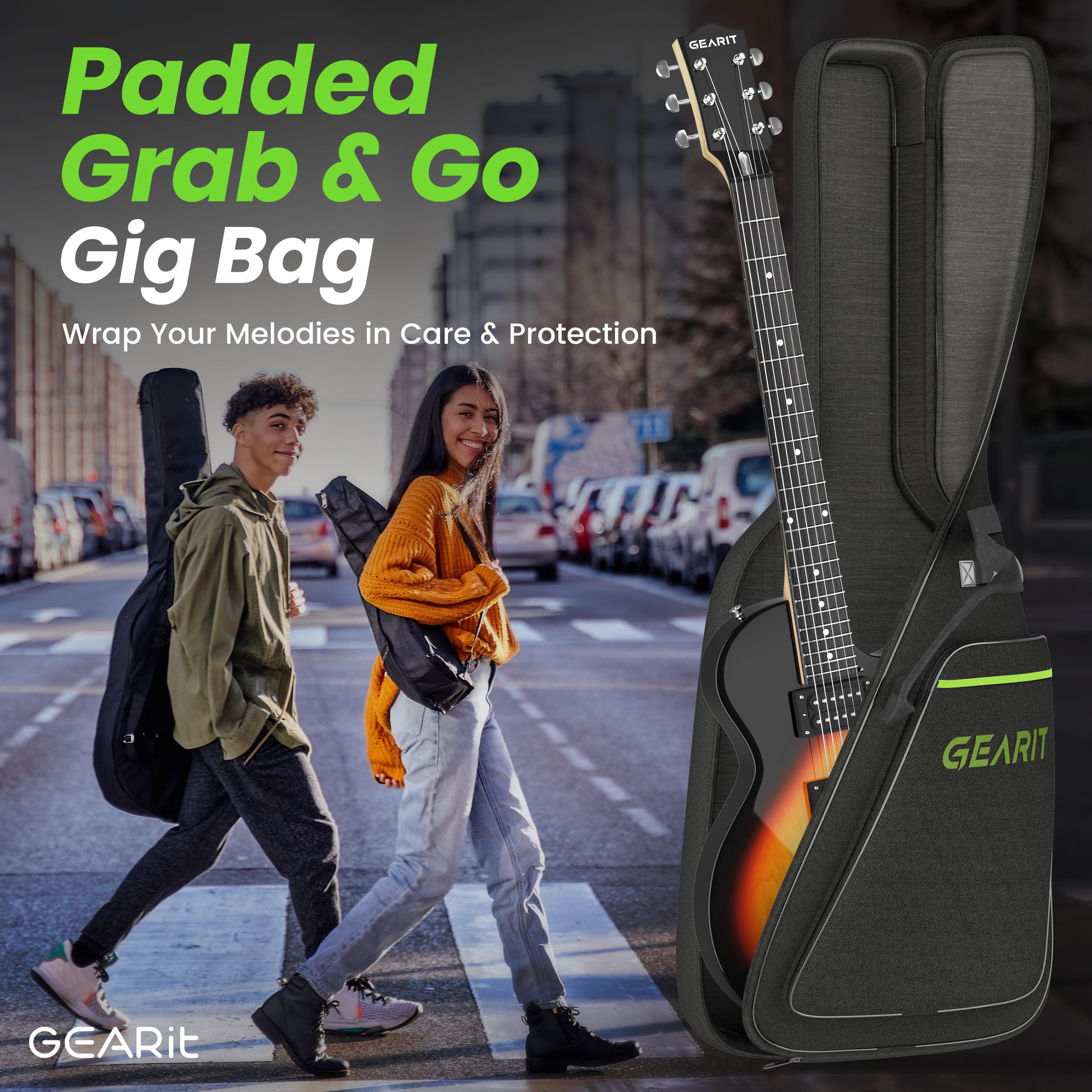 Presentamos el Kit de Guitarra Eléctrica GEARit GI-155 Valley Series 39″ Single Cut, ideal tanto para principiantes como para músicos experimentados. El diseño clásico de corte simple de esta guitarra garantiza una excelente jugabilidad y calidad de sonido, mientras que las dos pastillas Humbucker brindan tonos versátiles para rock, blues y country. Los extremos de los trastes redondeados ofrecen comodidad, y la funda acolchada protege tu instrumento cuando estás en movimiento. El set incluye un amplificador de 10W recargable con Bluetooth para practicar de forma portátil y pequeñas actuaciones. Comienza a tocar inmediatamente con este set todo en uno, disponible en Tobacco Burst, Black, Red, Blue, Arctic White, Green y Cherry Sunburst. Desbloquea tu potencial musical con el Kit de Guitarra Eléctrica GEARit GI-155 Valley Series. Vívelo. Rómpelo. GEARit.