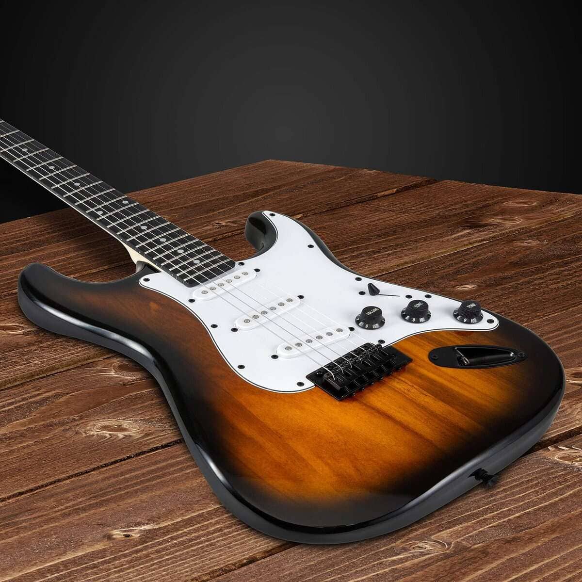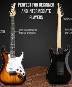 Este kit de guitarra eléctrica de LyxPro CS es perfecto para empezar tu viaje musical, ya seas un principiante, intermedio o profesional. La guitarra está construida con madera maciza de alta calidad para ofrecer máxima comodidad al tocar, un rendimiento de sonido óptimo, durabilidad ligera y una apariencia impresionante. Su diseño incluye un cuerpo suave de Paulownia, diapasón duradero de palisandro y mástil pulido de arce canadiense. Ofrecemos una variedad de colores vibrantes y tonos de madera natural en orientaciones tanto para zurdos como para diestros. Con un sonido rico, dinámico y fiel a la vida, esta guitarra vintage ofrece una mezcla perfecta de comodidad, estilo y facilidad de reproducción. Los controles de volumen y tono te permiten experimentar con diferentes ajustes y intensidades, mientras que el interruptor de pastilla de 5 posiciones brinda una respuesta dinámica con tonos que van desde nítidos y brillantes hasta suaves y melosos. Con un jack de salida confiable y cable conector, podrás conectarla rápidamente a tu amplificador favorito. Esta legendaria guitarra de 6 cuerdas está lista para tocar en solitario, jamming con la banda y actuaciones en vivo tanto en interiores como en exteriores. ¡Regala música a chicos, chicas, hombres y mujeres en cumpleaños, Navidad, graduación, vacaciones, aniversarios y más!