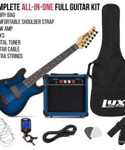 Todo lo que necesitas para empezar a tocar. El kit incluye todo lo que necesitas para empezar a tocar. Guitarra eléctrica de 30 «de tamaño completo para zurdos. Amplificador de 20W. Afinador digital de pinza. 6 cuerdas. 2 púas. Barra de trémolo. Correa para el hombro. Bolso de transporte. Amplificador de 20W. El amplificador de 20W es perfecto para el guitarrista principiante. Completo con conector para auriculares y overdrive, obtendrás un gran sonido de calidad. Afinador digital de pinza. Tocar en sintonía es esencial para cualquier guitarrista. El afinador digital incluido en este kit asegura que tu guitarra esté perfectamente afinada cada vez que te sientes a tocar. Las instrucciones fáciles de seguir harán que la afinación sea pan comido.