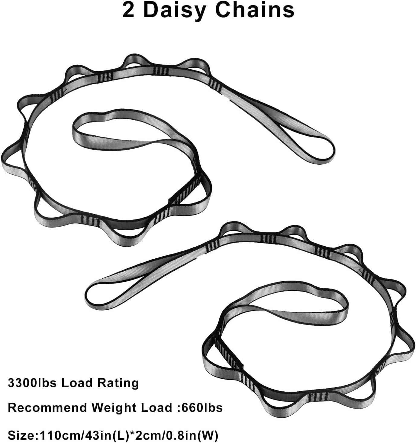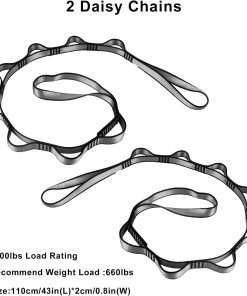 ¿Pueden los bucles Daisy envolver una viga expuesta para colgar el columpio sin perforar la viga? ¡Sí, puedes! Las cadenas Daisy son muy fuertes y se pueden usar de esa manera. A menudo recomendamos que uses el extremo sin bucle de la cadena Daisy y lo pases por otro bucle después de envolverlo alrededor de la viga o poste. A medida que te acuestas en el columpio, causará tensión en el lazo formado alrededor de la viga/poste y te mantendrá en su lugar.