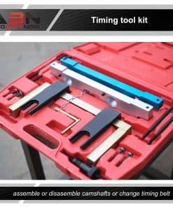 Al ensamblar/desarmar un árbol de levas, cambiar la correa de distribución o verificar/ajustar el tiempo de las válvulas en su BMW, utilice el Kit de Herramientas de Alineación de Árbol de Levas y Bloqueo del Motor para BMW N51, N52, N53, N54 de ABN. Este kit incluye todas las herramientas para bloquear un árbol de levas en posición TDC al verificar/ajustar el tiempo del árbol de levas, reemplazar el árbol de levas de entrada o cadena de tiempo. Equivalente a los números de herramienta de fábrica de BMW 114280, 114290, 11030. Adecuado para Sedán, Touring, Coupé, Convertible, BMW, Morgan Eva, Vehículo de Actividad Deportiva, Roadster, Hatchback, sDrive y los siguientes modelos: 128i, 130i, 135i – E81 / E82 / E87; 323i, 325i, 328i, 330i, 335i – E90 / E91 / E92 / E93; 523i, 525i, 528i, 530i – E60 / E61; 535i, 630i – E63 / E64; 730i – E65 / E66; X3 2.5 / 3.0 – E83; X5 3.0 – E70; Z4 2.5 / 3.0 – E85 / E86. ADVERTENCIA: Este producto puede exponerlo a productos químicos que son conocidos por el Estado de California como causantes de cáncer y defectos de nacimiento u otros daños reproductivos. Para más información, visite www.P65Warnings.ca.gov.