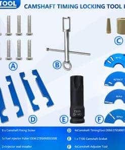 2. Paquete: 4 x Herramienta de Tiempo de Árbol de Levas, 4 x Kit de Herramientas Ajustadoras de Árbol de Levas, 1 x Extractor de Inyectores de Combustible, 1 x Toma de Árbol de Levas T100 (con Guantes y Estuche de Herramientas).