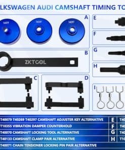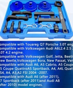 La herramienta de sincronización del árbol de levas del motor ZKTOOL está diseñada para ayudarlo a realizar el ajuste y la alineación del tiempo del motor en una amplia gama de modelos de vehículos Volkswagen y Audi. Este kit incluye un conjunto completo de herramientas de bloqueo de árbol de levas para motores 2.0, 2.4, 2.8, 3.0T, 3.2, 4.2, 5.2, 4.0L TFSI que le permitirán trabajar de manera precisa y eficiente en la sincronización del motor. Además, esta herramienta ha sido probada y garantizada para ofrecer un rendimiento óptimo. Confíe en ZKTOOL para obtener las herramientas profesionales que necesita para realizar reparaciones de calidad en su vehículo.