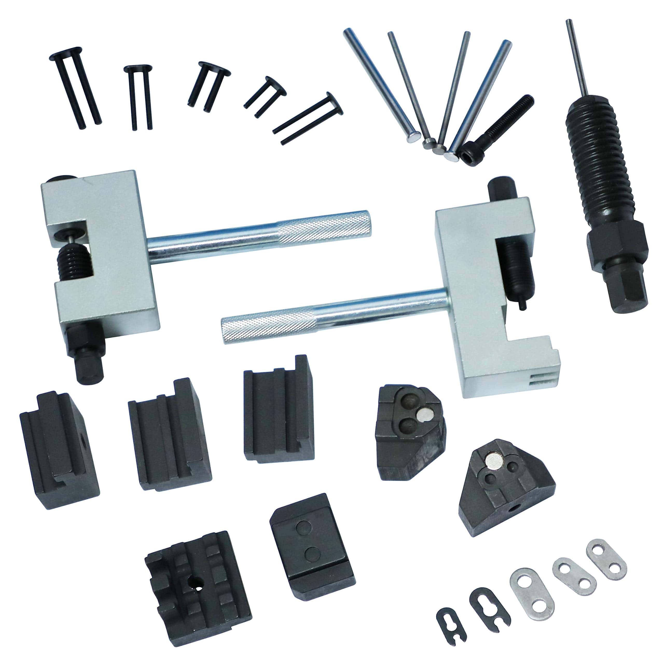 Kit de Herramientas de Desmontaje e Instalación de Cadena de Distribución para Motores con Doble Leva Desmontables Compative con Mercedes Benz M271 M272 M273 M276 Chrysler para Jeep. La herramienta esencial para la cadena de distribución compatible con motores diésel Mercedes Benz 1.7D 2.1D 2.2D 2.7D 3.0D 3.2D 3.9D y 4.0D CDi. La herramienta de separación y ensamblaje de eslabones permite una rápida y fácil separación y ensamblaje de la cadena de distribución, también compatible con motores diésel Jeep/Chrysler 2.2D 2.7D 3.0D CRD. Compatible con Mercedes-Benz M615, M616, M617, M102, M103, M116, M272, M273, M276. Apto para modelos Mercedes con cadena de distribución doble con perno de cadena de 4 mm. Diseñado especialmente para reemplazar la cadena interior, instalar y alimentar la nueva cadena para reemplazar la cadena rota y revertir. Esta herramienta se puede utilizar en cadena interior de una o dos filas, el agujero de conexión puede ser tanto de 3.1 como de 4.4. Este kit de herramientas se utiliza para renovar y remachar las cadenas de distribución. Juego de herramientas especial que permite una separación limpia, un tirado fácil y un remachado preciso de las cadenas de distribución, se utiliza para presionar sobre los remaches de los pernos de cadena de rodillos de tipo sumergido de cadenas de rodillo simple y doble. Garantía: Ofrecemos 12 meses de garantía, reembolsaremos o reemplazaremos si la herramienta de remachado tiene algún problema de calidad.