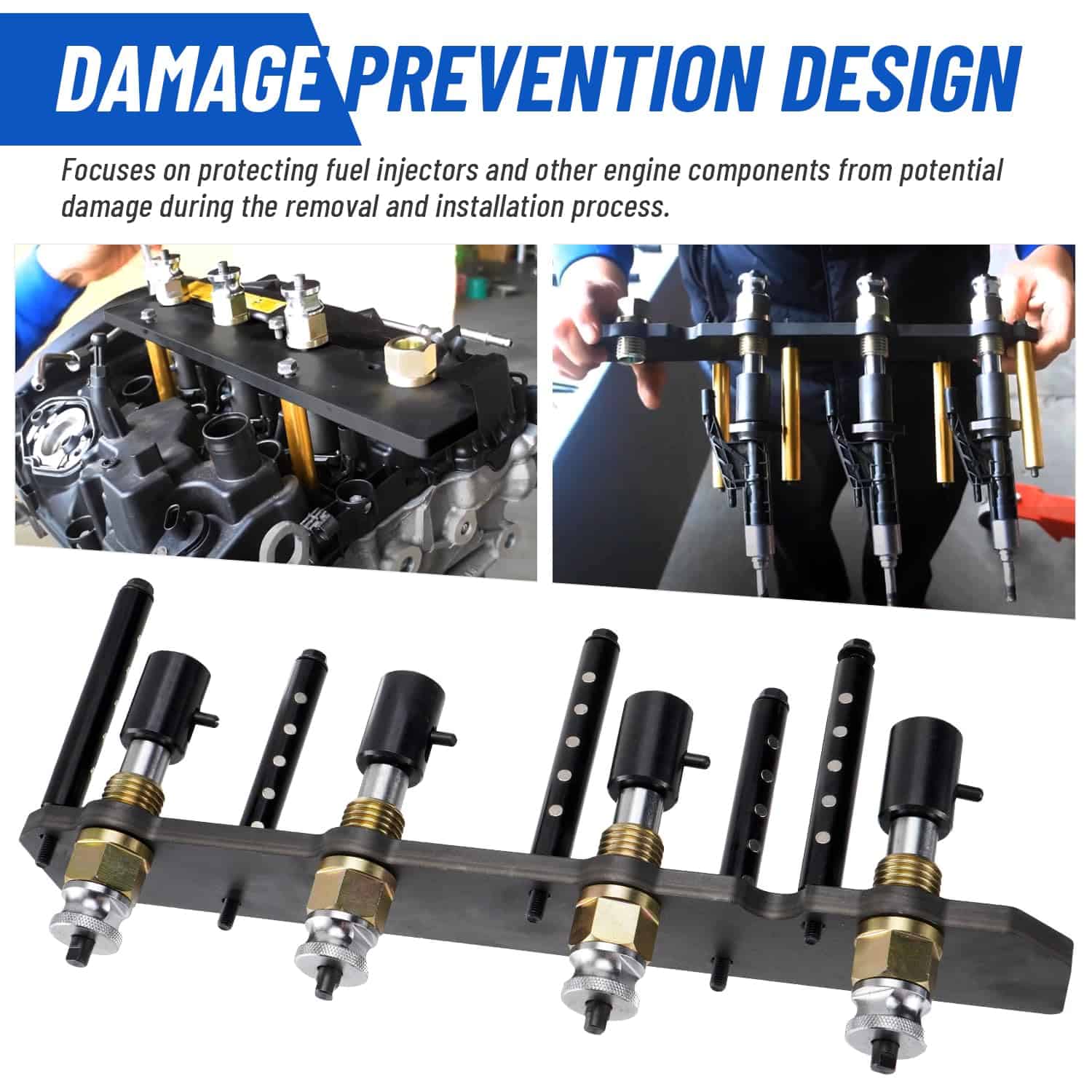 2. Partes protectoras: Se enfoca en proteger los inyectores de combustible y otros componentes del motor de posibles daños durante el proceso de eliminación e instalación.