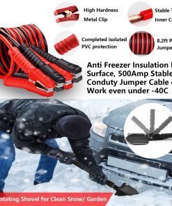 2. KIT DE EMERGENCIA AUTOMOVILÍSTICO PREMIUM Y RESISTENTE: A diferencia de otros cables de arranque de 300 amperios en el mercado, nuestros cables de arranque de 6 calibres y 500 amperios están cubiertos con PVC de primera calidad para garantizar estabilidad incluso en invierno. El kit de asistencia en carretera para autos actualizado incluye accesorios prácticos: un conjunto de 16 herramientas de reparación para coches, pala de nieve/jardín, cuerda de remolque, linterna manual, triángulo de advertencia, botiquín de primeros auxilios, guantes antideslizantes, también contiene pala de nieve/jardín.