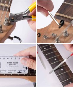 Este kit de herramientas de guitarra de 84 piezas es ideal para el mantenimiento, reparación y ajustes más comunes de cualquier tipo de guitarra, bajo u otros instrumentos de cuerda. Incluye todas las herramientas esenciales en una sola bolsa con diseño de cremallera y asa para facilitar el transporte. Es un regalo ideal para músicos, afinadores y entusiastas de la guitarra, ya que cuenta con todo lo necesario para el cuidado y óptimo rendimiento de su instrumento querido.