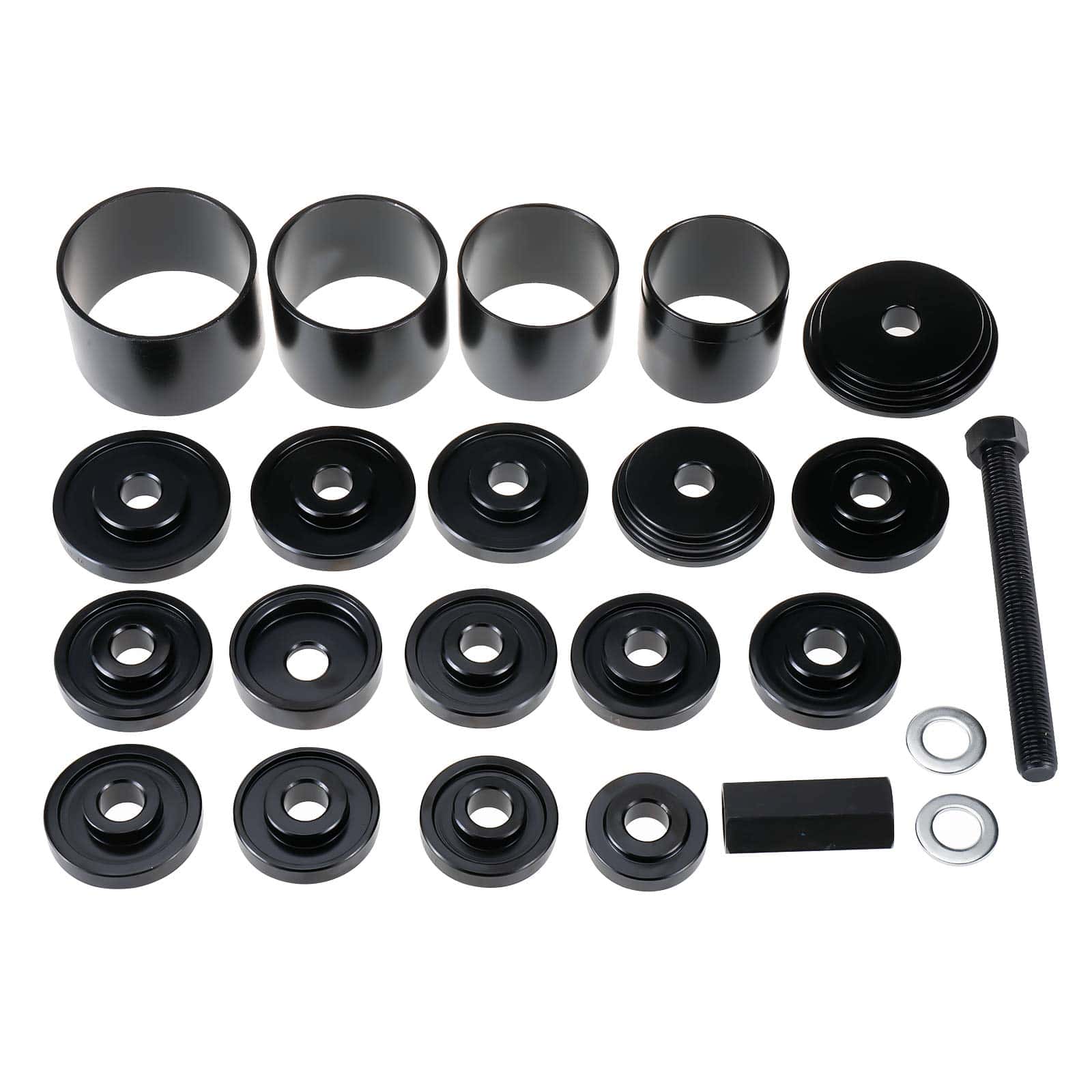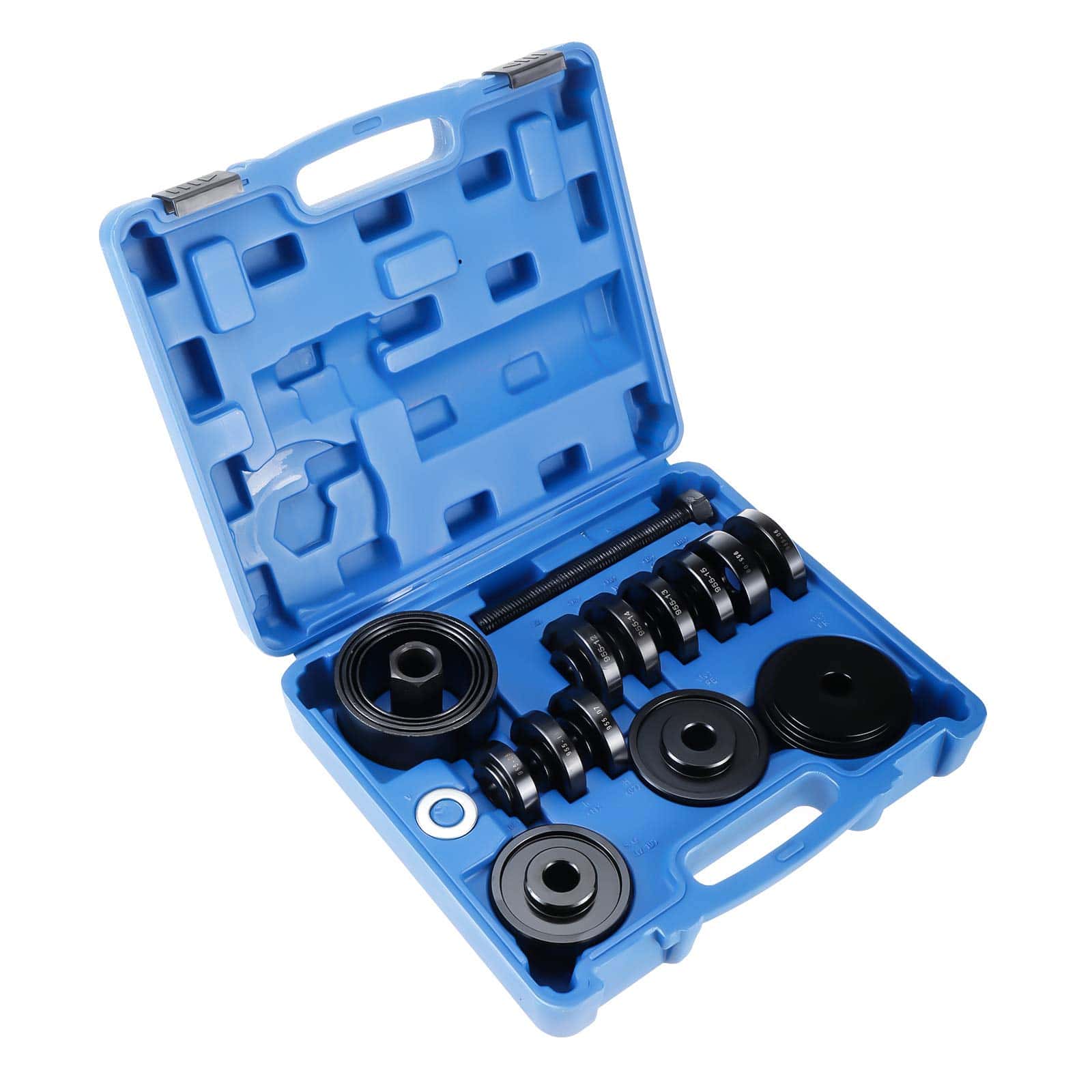 El Kit de Herramientas para Extracción e Instalación de Baleros de Rueda Delantera de Tracción Delantera de 23 pcs BTSHUB es ideal para la extracción e instalación de baleros de rueda delantera de tracción delantera en autos y camionetas pequeñas. Con este kit, podrás reemplazar los baleros de las ruedas manteniendo el eje de dirección y la estría ensamblados en el vehículo, evitando daños en la maza y los baleros. Las adaptadores duraderos están hechos de acero para un rendimiento resistente al óxido. Incluye una variedad de mangas, arandelas, bujes, instalador de maza y tornillo de fuerza deslizante para una fácil extracción e instalación. ¡Haz el mantenimiento de tus baleros de rueda delantera de manera precisa y segura con este completo kit de herramientas!