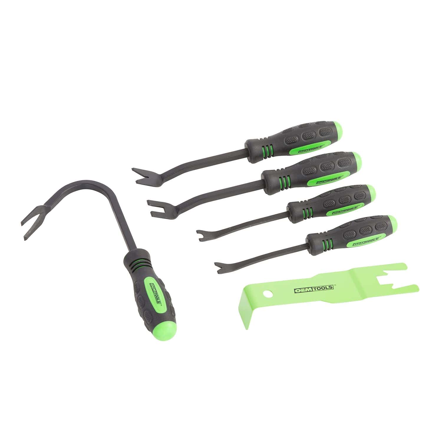 El Kit de Herramientas para Quita y Pon de Molduras de Coche de 6 Piezas OEMTOOLS 25301 está diseñado para trabajos eficientes de quita de molduras automotrices interiores y exteriores. Este kit de herramientas para quita de tapicería incluye herramientas de tapicería en forma de V y en forma de U, herramientas para quitar paneles de puertas, una herramienta para quitar molduras y una herramienta para quitar clips, lo que lo hace ideal para reparaciones de tapicería, reemplazo de paneles de puertas y detallado de vehículos. Cada herramienta cuenta con un mango de agarre cómodo de goma para una mejor palanca, un mejor control y una reducción de la fatiga de las manos. El diseño de ingeniería de precisión minimiza los daños a los clips de las molduras, asegurando un proceso de quita más seguro. Construido para profesionales automotrices y entusiastas del bricolaje por igual, este juego simplifica la quita y puesta de molduras y tapicerías mientras protege las superficies del vehículo. Ya sea trabajando en paneles de puertas, tableros de instrumentos o molduras interiores, estas herramientas ofrecen precisión y durabilidad para tareas exigentes. Actualiza tus herramientas de taller de carrocería con este juego esencial de quita para reparaciones más rápidas y eficientes.