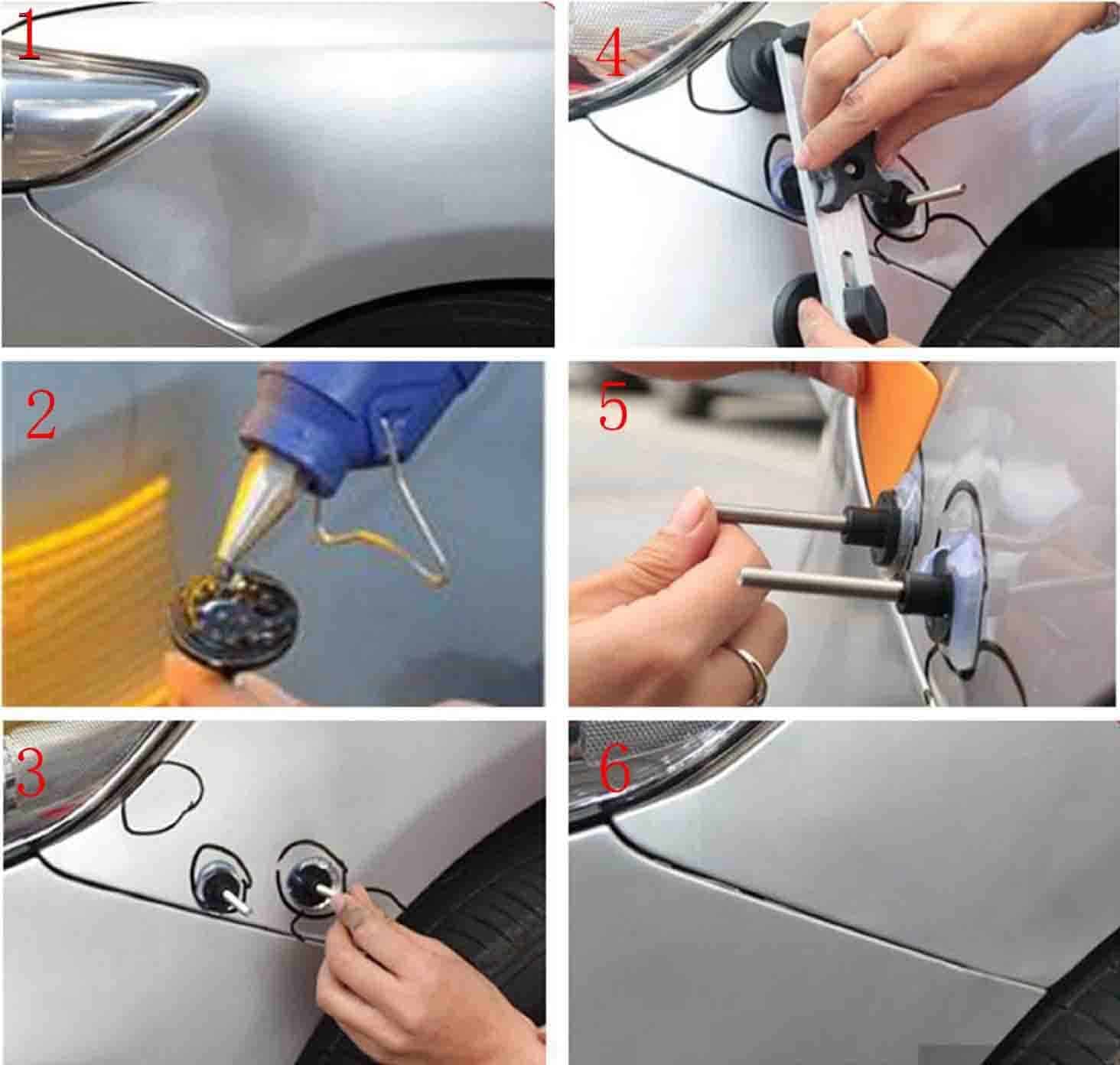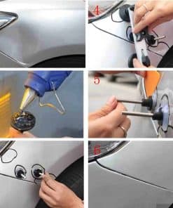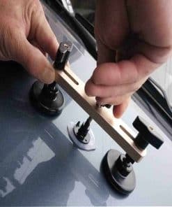 1. El puente extractor AMTION PDR funciona en pequeñas abolladuras y daños por granizo. NOTA – Necesitas una pistola de pegamento y barras para usar esta herramienta PDR, no está incluida.