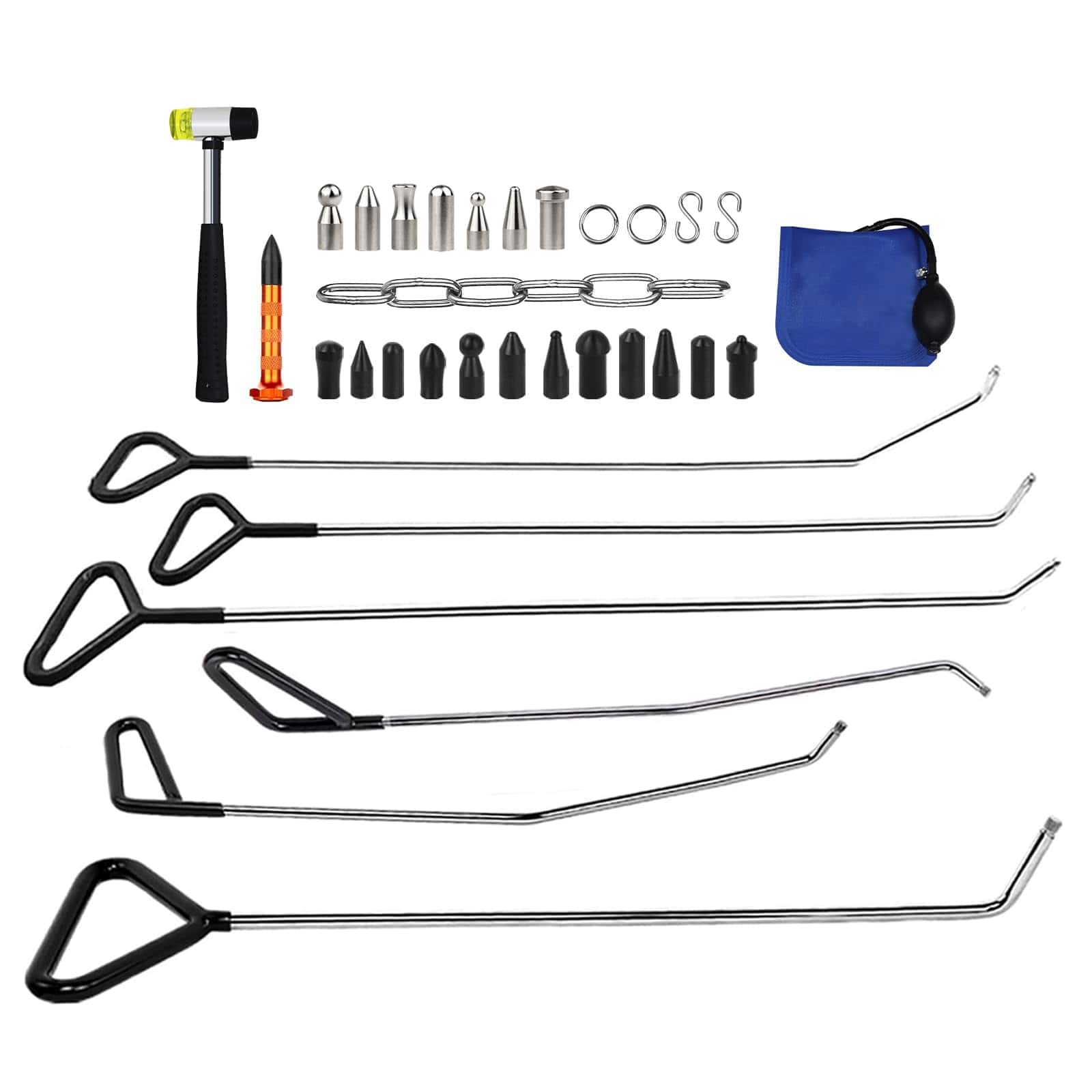 4. Material Las varillas de herramientas para reparación de abolladuras con mango de goma cómodo, las varillas de acero inoxidable son más firmes que las varillas normales, no se doblan fácilmente, no se oxidan fácilmente, y la parte del mango está hecha de goma, mango cómodo para un servicio prolongado.