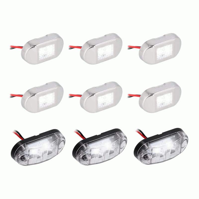 ¡Ilumina el pozo vivo, la cubierta, áreas de almacenamiento y más! Este kit de iluminación de acento marino blanco incluye 6 mini luces de acento blancas de acero inoxidable y 3 luces de utilidad blancas más grandes con plástico de alto impacto. Las luces LED con clasificación IP67 tienen carcasas duraderas y resistentes a la intemperie para sellar la humedad y prevenir la corrosión. El bajo consumo de corriente de los LEDs reduce la carga sobre la batería y los kits cuentan con cables estañados resistentes a la corrosión e incluyen hardware de instalación. Diseñado para uso marino.