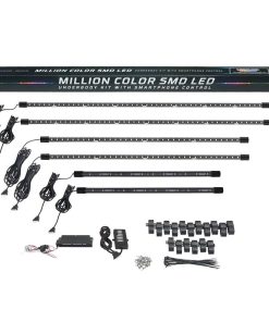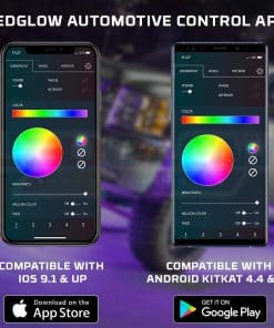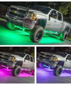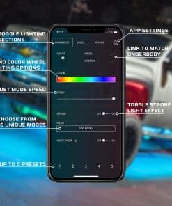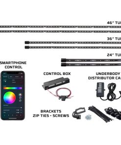 El Kit de Iluminación LED bajo del vehículo de camión en un Millón de Colores con Bluetooth de 6 Piezas de LEDGlow combina tu dispositivo Smartphone con luces de bajo de vehículo ultra brillantes de varios colores que transforman el aspecto y estilo de tu camión de tamaño mediano o completo con unos simples deslizamientos. La aplicación de control automotriz de LEDGlow cuenta con una rueda de colores para seleccionar cualquier color sólido, 16 modos de iluminación únicos, 5 preajustes para guardar tus colores/patrones favoritos, una configuración de luces de cortesía que enciende las luces cuando se abre una puerta, un apagado por voltaje bajo que corta la alimentación al kit cuando el voltaje de la batería cae por debajo de 10 voltios durante 1 minuto, disponible en iOS y Android. Incluye (2) tubos de bajo de 46″, (2) de 36″ y (2) de 24″ resistentes al agua que albergan 192 LED SMD, caja de control Bluetooth, control remoto inalámbrico, cable de conexión de tubo de bajo de 7 puertos, soportes de montaje, tornillos autorroscantes, bridas y una guía de instalación detallada que te guía a través del proceso de instalación del kit y emparejamiento de tu dispositivo Smartphone con la caja de control Bluetooth. La caja de control cuenta con un chip Bluetooth 4.0 LE que se conecta sin problemas al Smartphone, diseño resistente al agua y fusible impermeable en línea. Garantía de LEDGlow con garantía limitada de un año y soporte técnico gratuito de por vida.