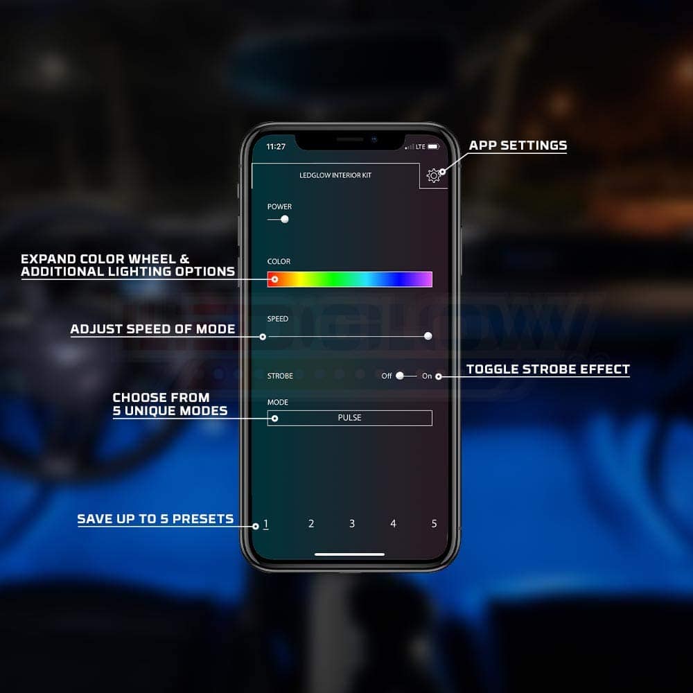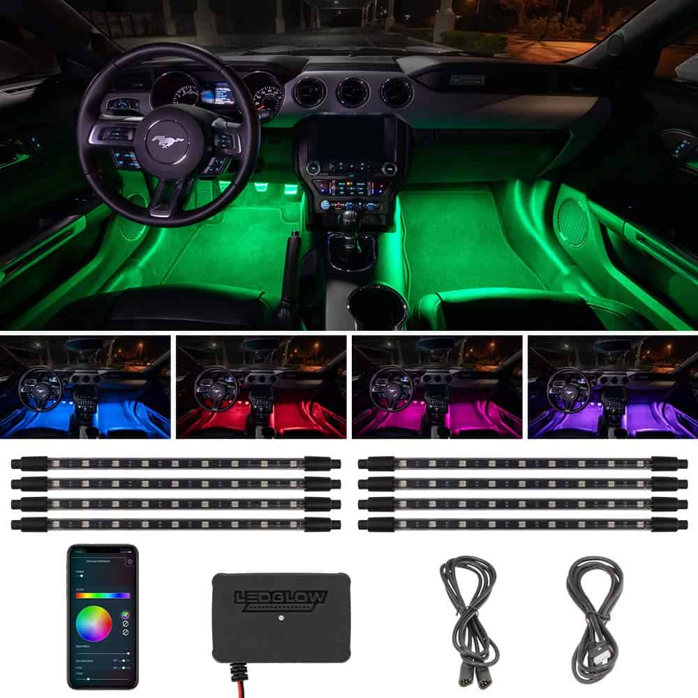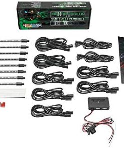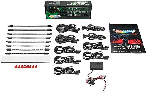 Este kit de iluminación interior Bluetooth de LEDGlow se ajusta universalmente a 72 SMD LEDs superficiales brillantes en el interior de cualquier automóvil o camión para un aspecto personalizado y único. Incluye (8) tubos flexibles de 12″ que se instalan fácilmente utilizando conectores modulares mejorados de grado automotriz que encadenan en serie cada tubo interior. Cada tubo interior cuenta con 9 SMD LEDs que agregan un brillo multicolor ultra brillante a los puestos y debajo de los asientos. Su vehículo se transformará con estas luces LED interiores únicas para automóviles y camiones. Este kit incluye una caja de control delgada que presenta una Rueda de Color con una cantidad casi ilimitada de combinaciones de colores, así como patrones sólidos, de pulso, barrido, persecución de colores y de destello. A través de la aplicación de control automotriz de LEDGlow, también puedes elegir entre colores sólidos como azul, rojo, verde, rosa, morado, verde agua, naranja, violeta, amarillo y blanco, así como diferentes tonos de esos colores. Los patrones sólidos, de pulso, barrido, persecución de colores y de destello también reaccionarán a la música que se reproduce dentro de tu automóvil gracias a nuestro Modo de Activación de Sonido. Personaliza cada patrón de iluminación ajustando los niveles de velocidad a tu preferencia. Este kit se puede alimentar directamente desde la batería del vehículo, con opciones adicionales de alimentación disponibles para una personalización extrema en cualquier vehículo al agregar kits de iluminación interior LED para automóviles y camiones. Utilizando el modo de omisión de iluminación automática, este kit con controlador de aplicación se puede configurar para iluminarse cuando se abre una puerta, cuando se encienden los faros o cuando se enciende el encendido. LEDGlow respalda cada uno de sus productos con una garantía limitada de un año y soporte técnico gratuito de por vida.