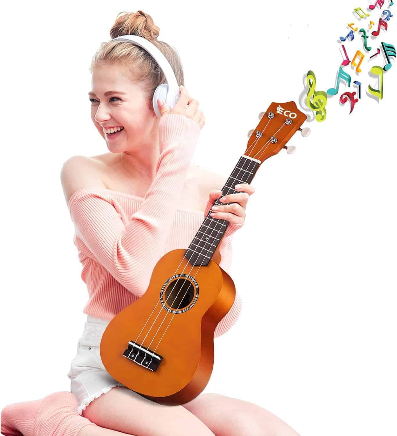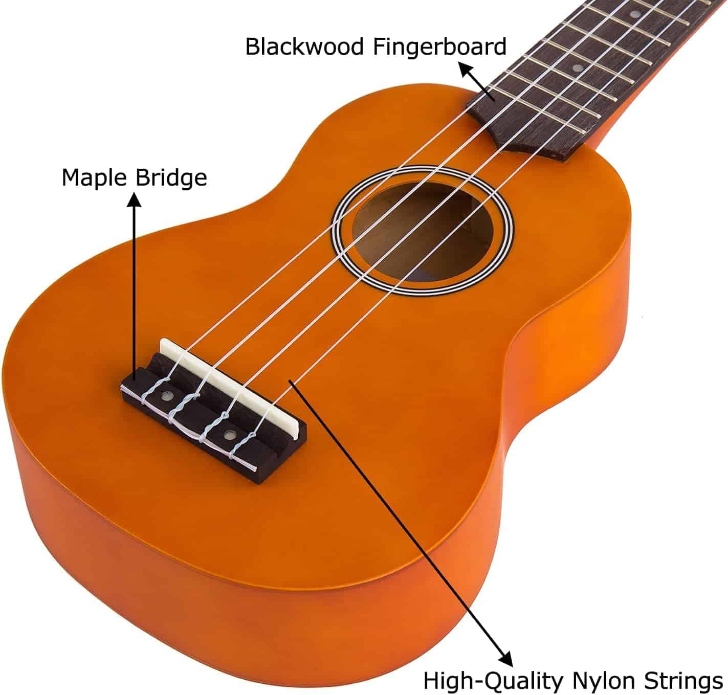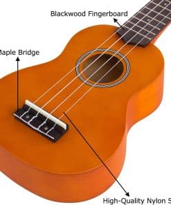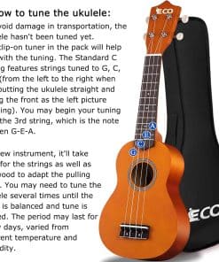 3. Descubre tu música: Nuestro ukelele cuenta con cuerdas de nylon de alta calidad para darle un tono distintivo que destacará si tocas solo o en grupo. ¡Descubre el sonido melódico único de las Islas Hawaianas con nuestro Kit de Iniciación al Ukelele Soprano de 21″! Ahora puedes aprender el ukelele por ti mismo, disfrutando tu viaje musical.