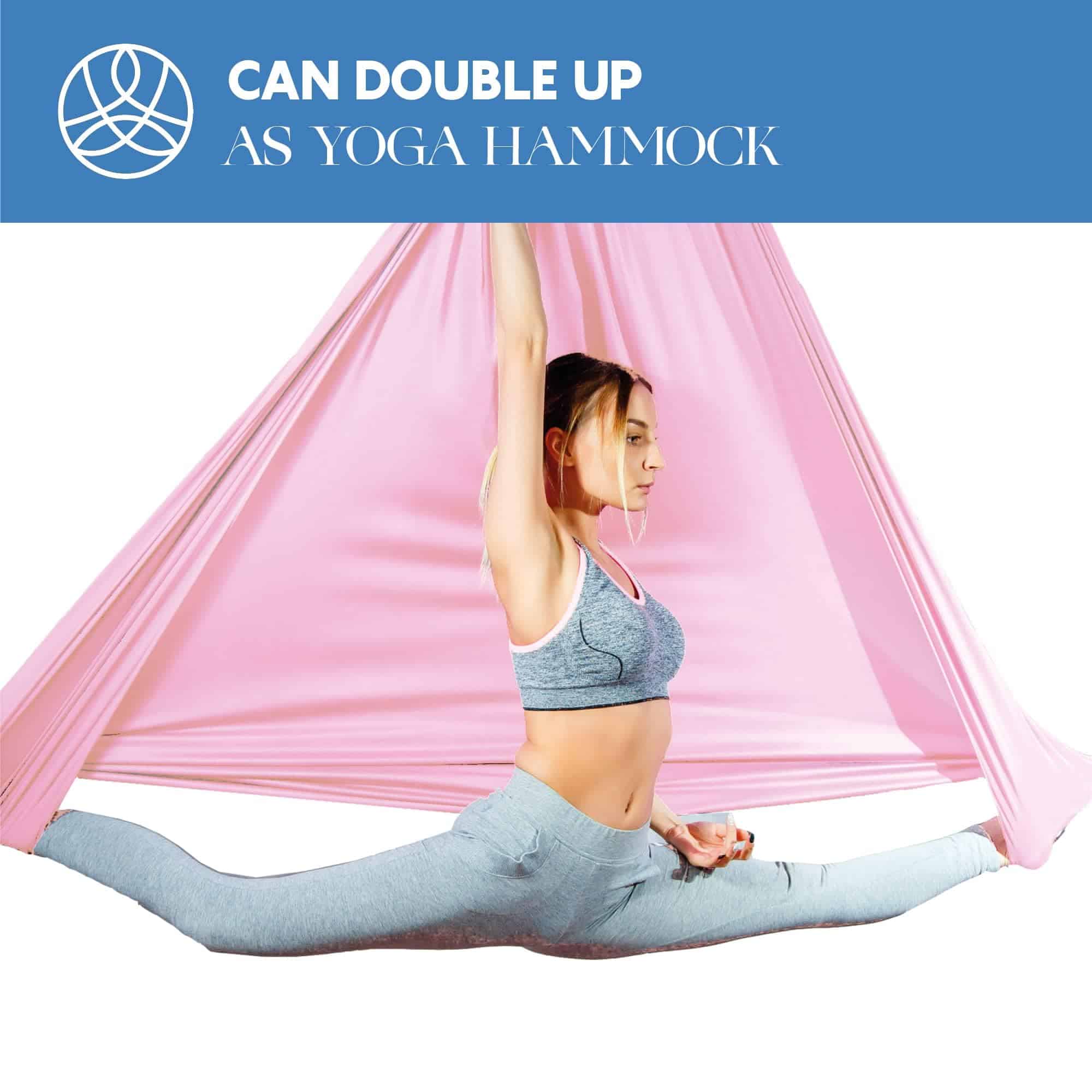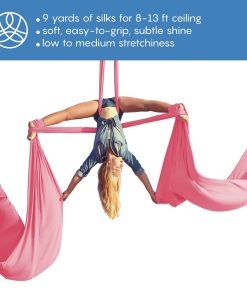 Además, con nuestro Kit de Inicio de Telas Aéreas, no solo podrás practicar yoga aéreo, sino también usarlo para gimnasia con telas en casa o convertirlo en una hamaca de yoga para relajarte. Experimenta la versatilidad de nuestras telas aéreas para practicar baile de yoga aéreo, terapia de inversión, meditación y más.