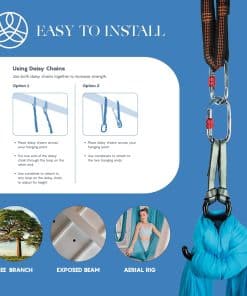 Con nuestra fácil configuración de yoga aéreo y detalladas instrucciones con imágenes, podrás comenzar en poco tiempo. Ya sea que quieras practicar en casa o llevar tu kit al estudio, nuestras telas aéreas te permitirán disfrutar de tu práctica donde quieras.