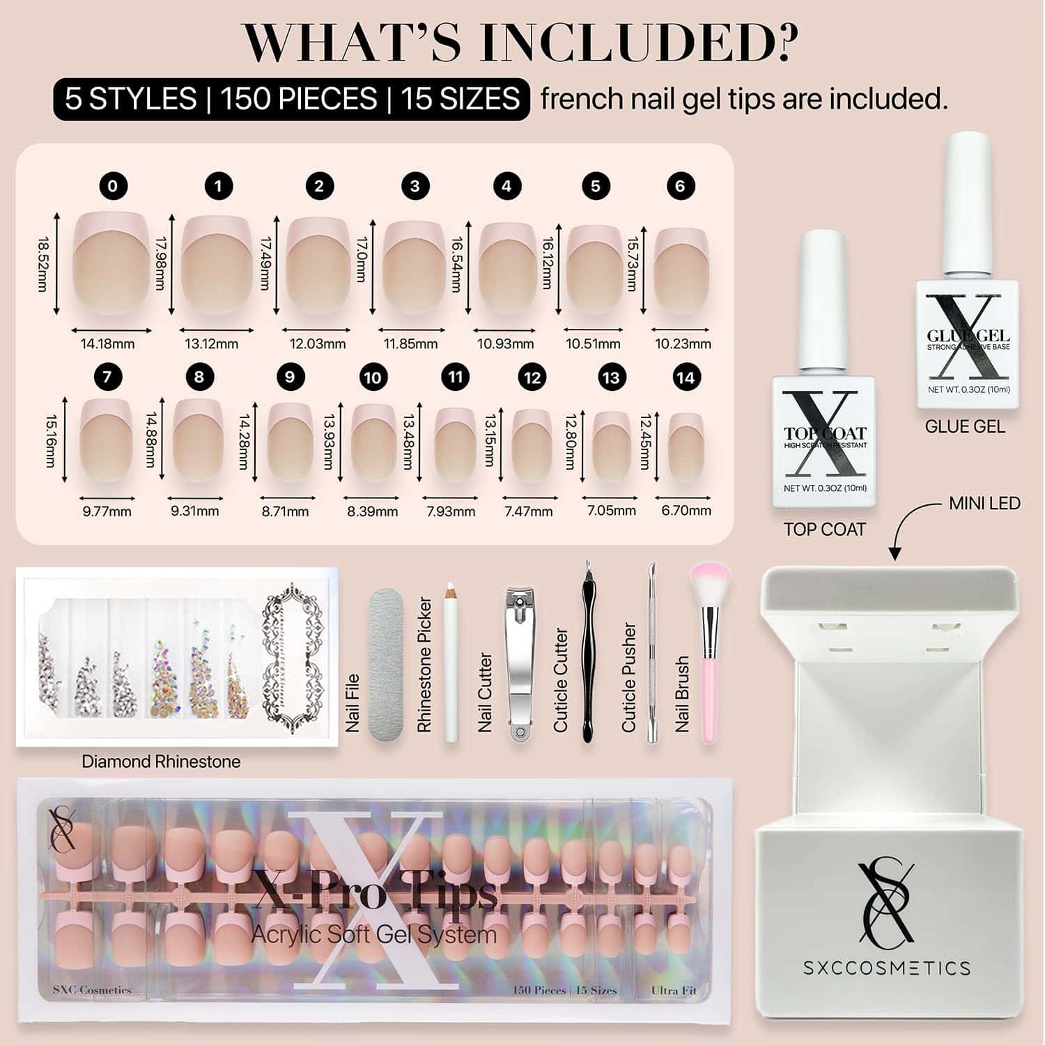 Kit de Inicio de Uñas Postizas SXC Cosmetics French Tip –