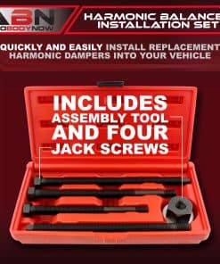 El Kit de Instalación de Polea de Armonizador a Largo Alcance ABN te permite instalar de manera rápida y sencilla amortiguadores de reemplazo en tu vehículo. Un armonizador protege tu vehículo de vibraciones dañinas que pueden desgastar la vida de tu cigüeñal y protege las roscas del cigüeñal para que no se desgasten, por lo que es importante instalar el armonizador con precisión y exactitud. Diseñado para su uso en muchos vehículos Ford, GM, Dodge y Chrysler con motores V8 y V6, los tamaños de rosca de largo alcance incluyen M14x1.5, M12x1.75, M12x1.5, M16x2.0. La herramienta extractora de armonizador de largo alcance incluye una herramienta de ensamblaje de tuerca de rodamiento de presión y 4 tornillos jack para adaptarse a una variedad de tamaños de vehículo. Construido con materiales de metal de alta resistencia para durabilidad y longevidad con un acabado de óxido negro para resistencia a la corrosión. El estuche de soplado de plástico resistente proporciona organización conveniente y fácil transporte, cuenta con pestillos de bloqueo para un almacenamiento seguro.