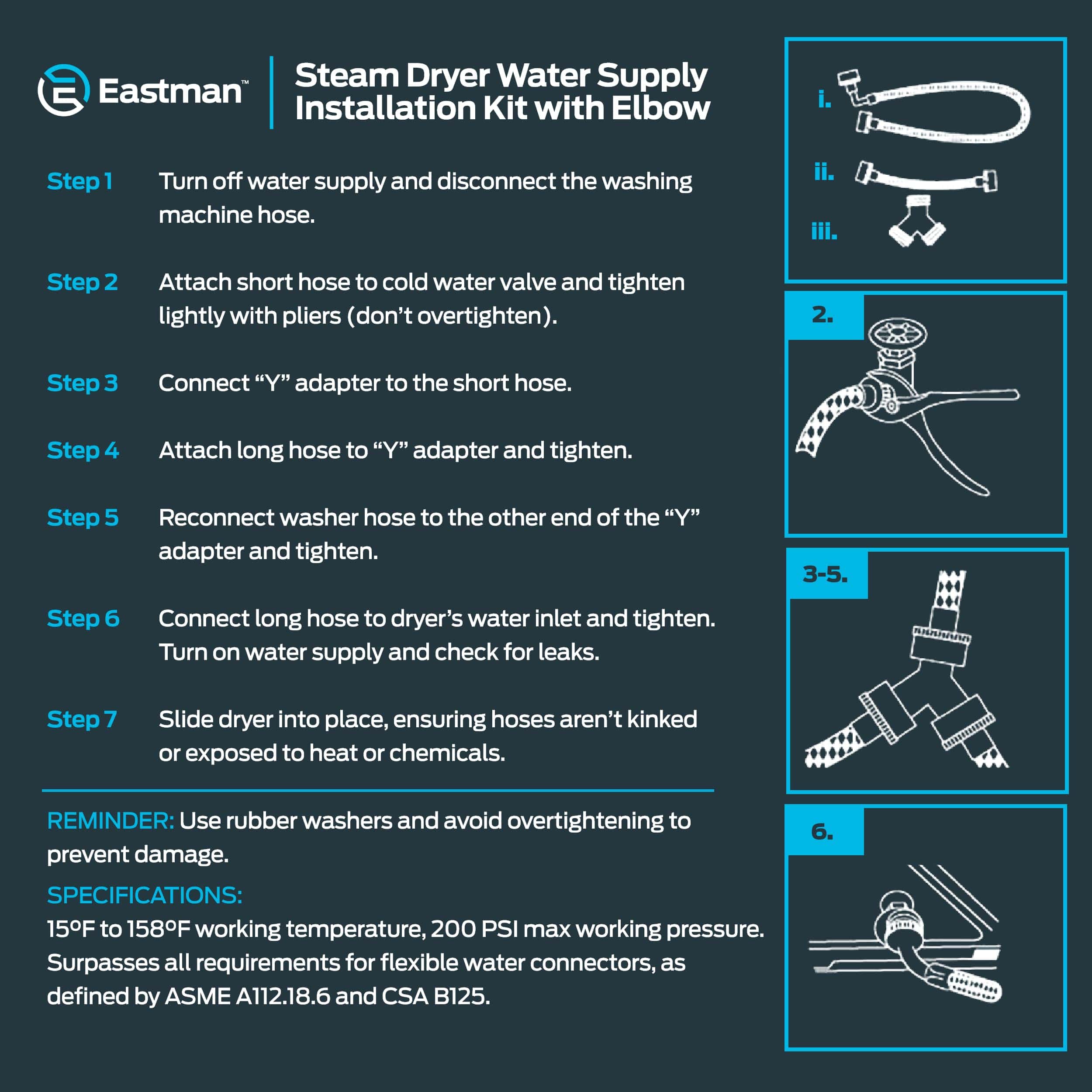 Kit de instalación de secadora de vapor Eastman, manguera