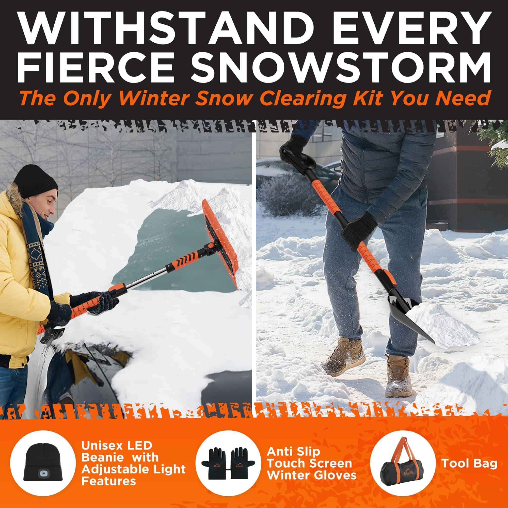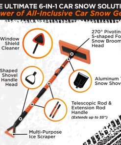3. CONVENIENCIA TODO EN UNO – Este completo kit de herramientas para la nieve del coche incluye un versátil cepillo de nieve y un raspador de nieve multiusos, lo que lo hace ideal para quitar nieve de tu coche. Es tu solución de limpieza de vehículos y raspador de nieve para coche de confianza.