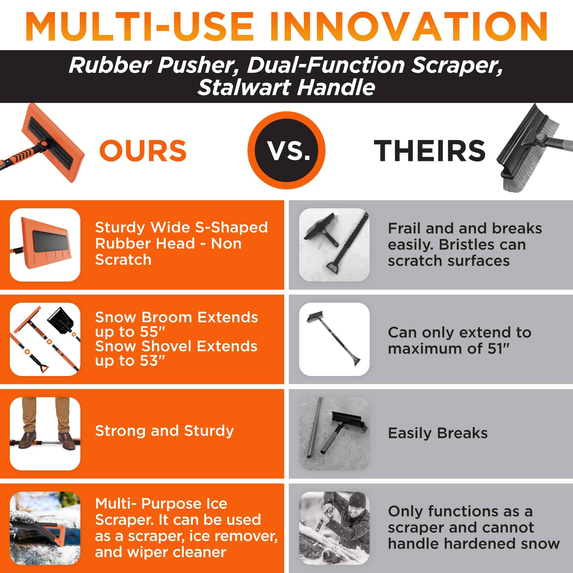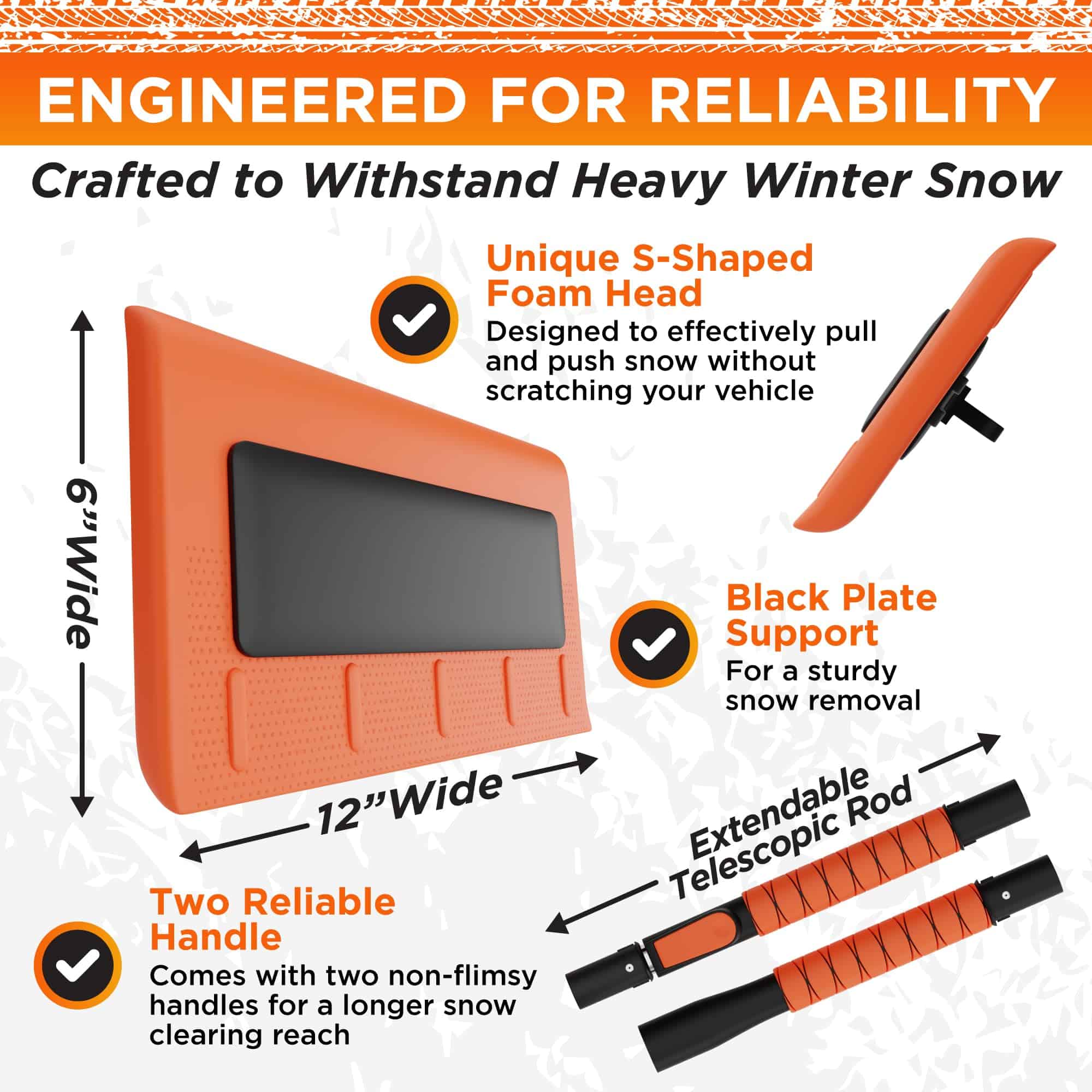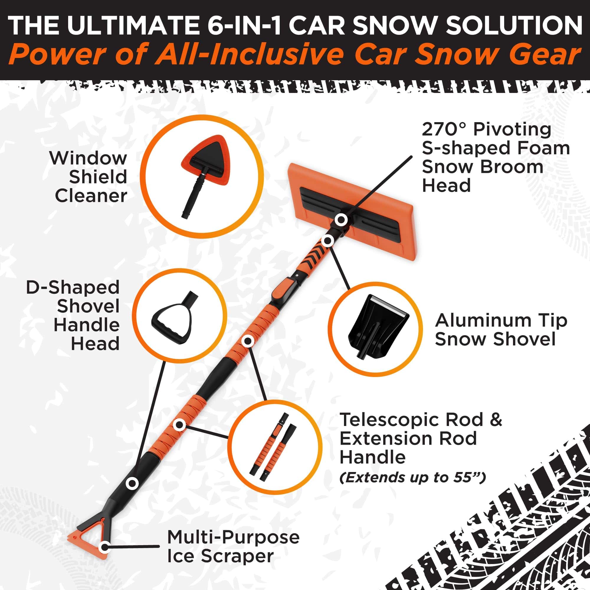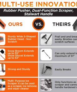 2. FÁCIL REMOCIÓN DE NIEVE – El cepillo para coche pivotante de 270 grados con varillas extensibles (hasta 55″) hace que la remoción de nieve del coche sea sencilla. Nuestra herramienta telescópica de cepillo de nieve con mango extensible es el cepillo de nieve perfecto para SUVs, camionetas y coches. ¡No más esfuerzos!.
