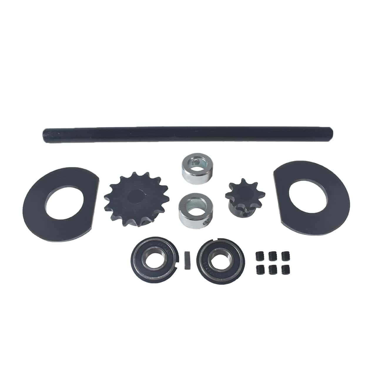 Compatibilidad: Este kit funcionará para cadenas 40/41/420. Muy popular para usar en Go Karts y Mini Bikes. Incluye: 1 Jackshaft de 5/8″ por 12″ con 3/16″ de chaveta + 1 Sprocket de 8 dientes con chaveta incorporada, 5/8″ ID + 1 Sprocket de 14 dientes, 5/8″ ID + 2 soportes de rodamientos + 2 rodamientos sellados + 2 rodamientos de precisión + 1 Cuello de 3/16″ por 3/16″ por 3/4″ + 6 tornillos. Nota: Proporcionamos imágenes claras, medidas cuando sea posible. Por favor, verifique lo más posible para asegurarse de que el artículo sea el que necesita.