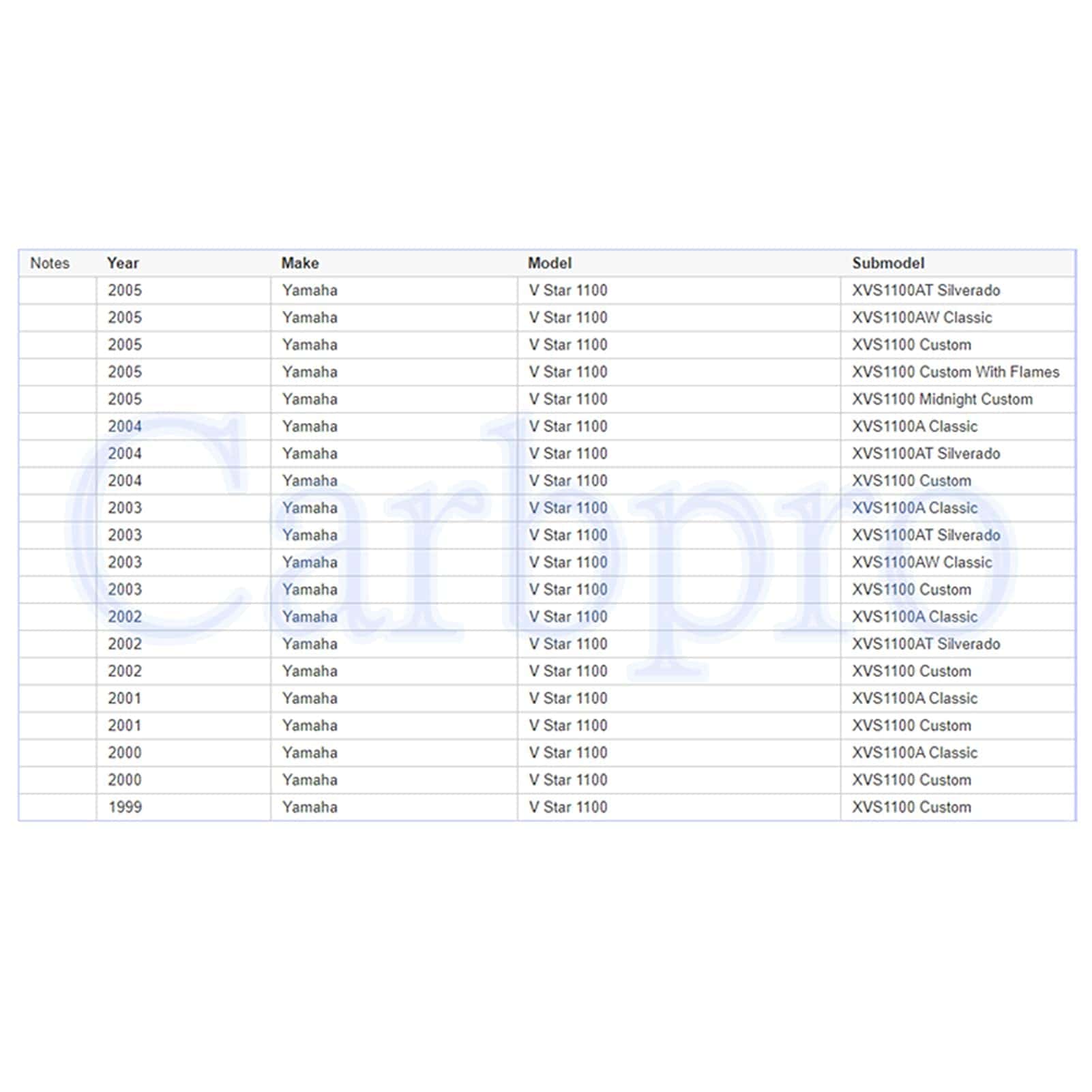 2. Compatible con Yamaha XVS11A XVS1100A V-Star Classic 1999-2005.