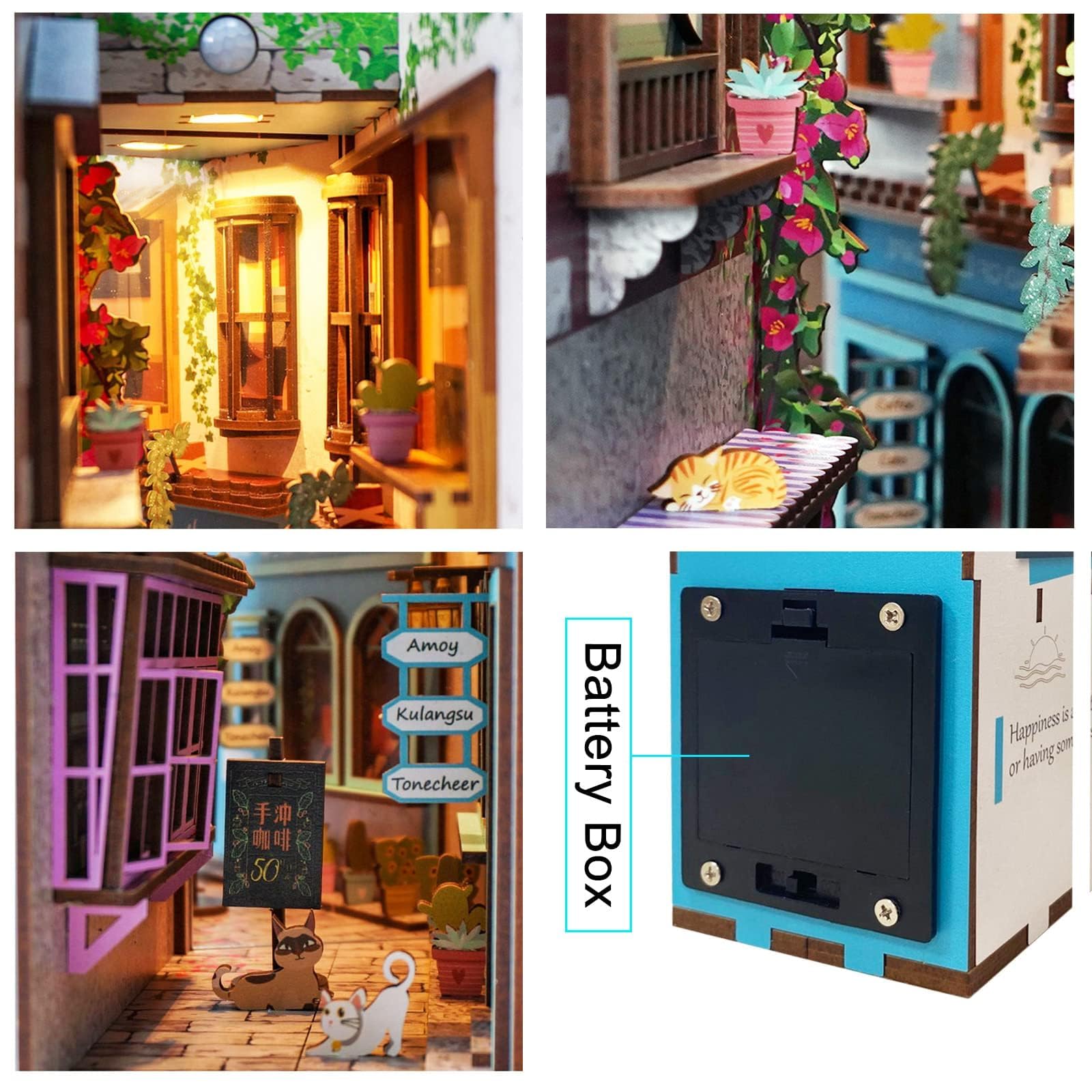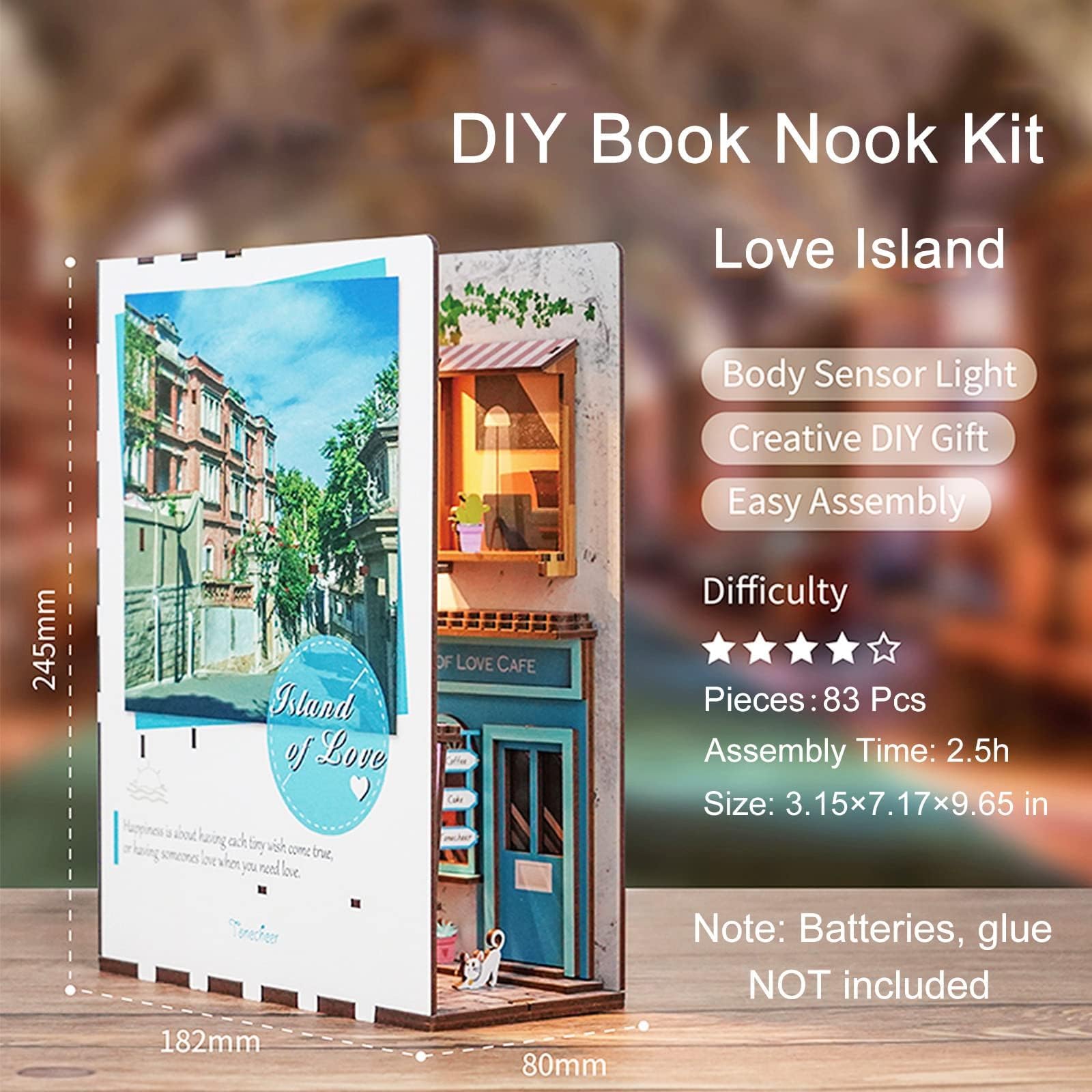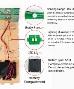 Destaques: Control del Sensor de Cuerpo – Luz Nocturna de Ambiente con Sensor Humano Crea Posibilidades Ilimitadas en un Espacio Limitado Diorama en Miniatura 3D Efecto de Vista Profunda Creativa Material de Alta Calidad Tecnología de Corte Preciso Especificaciones Marca: ROCOXIA Nombre del Producto: Kit de Librero DIY con Luz LED Sensor de Cuerpo Humano Materiales: Madera de alta calidad Peso: 2.2 LB Tamaño Finalizado: 10 x 7.6 x 2.2 pulgadas Rango del sensor de cuerpo humano: 0.3m – 2m Pilas: 3 pilas AA (no incluidas)