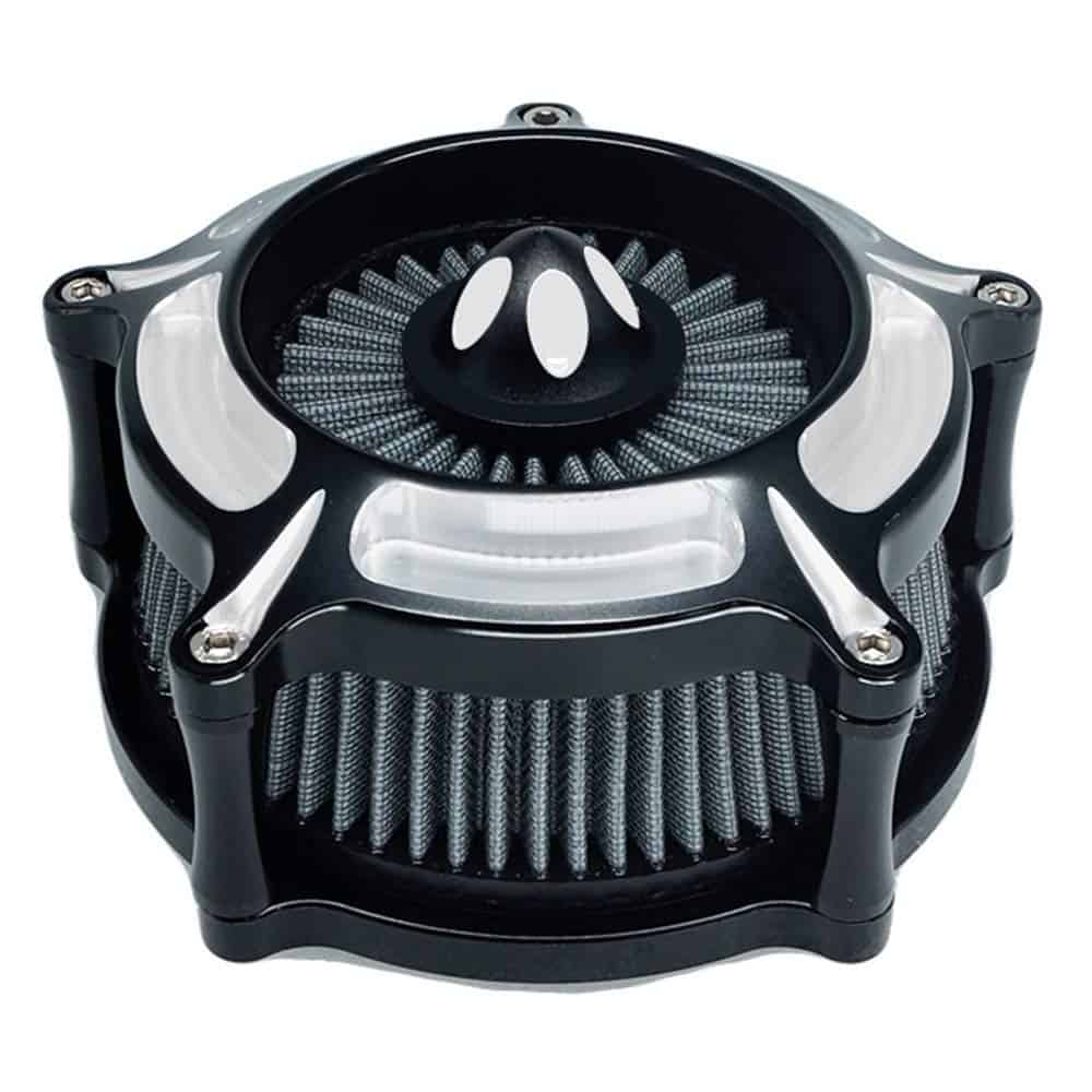 4. Filtro de aire de alto volumen lo mejor en filtración incluido. Placa base revolucionaria que promueve un flujo de aire suave hacia el carburador/cuerpo del acelerador.