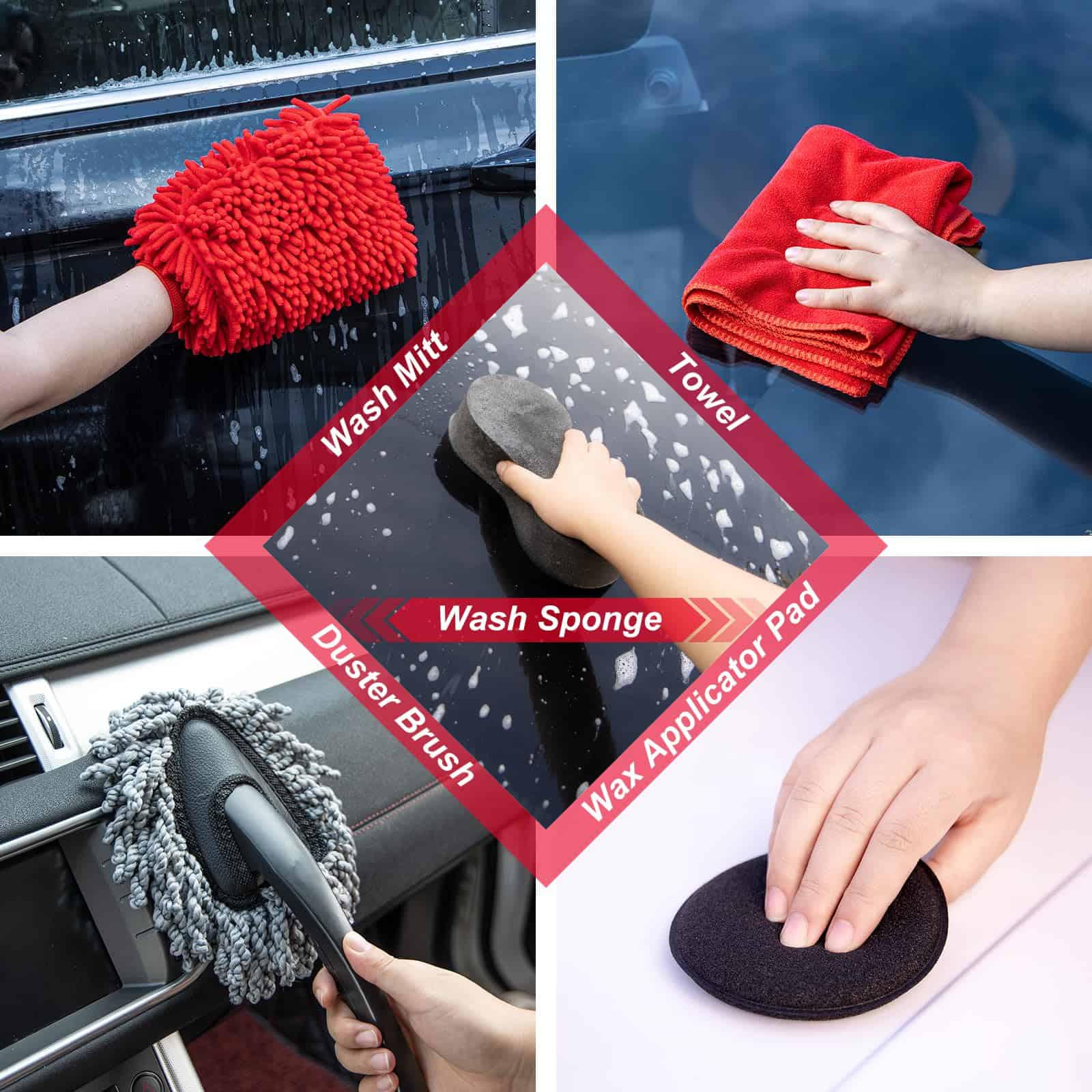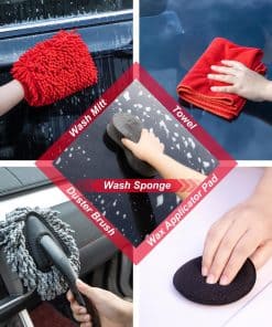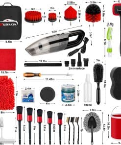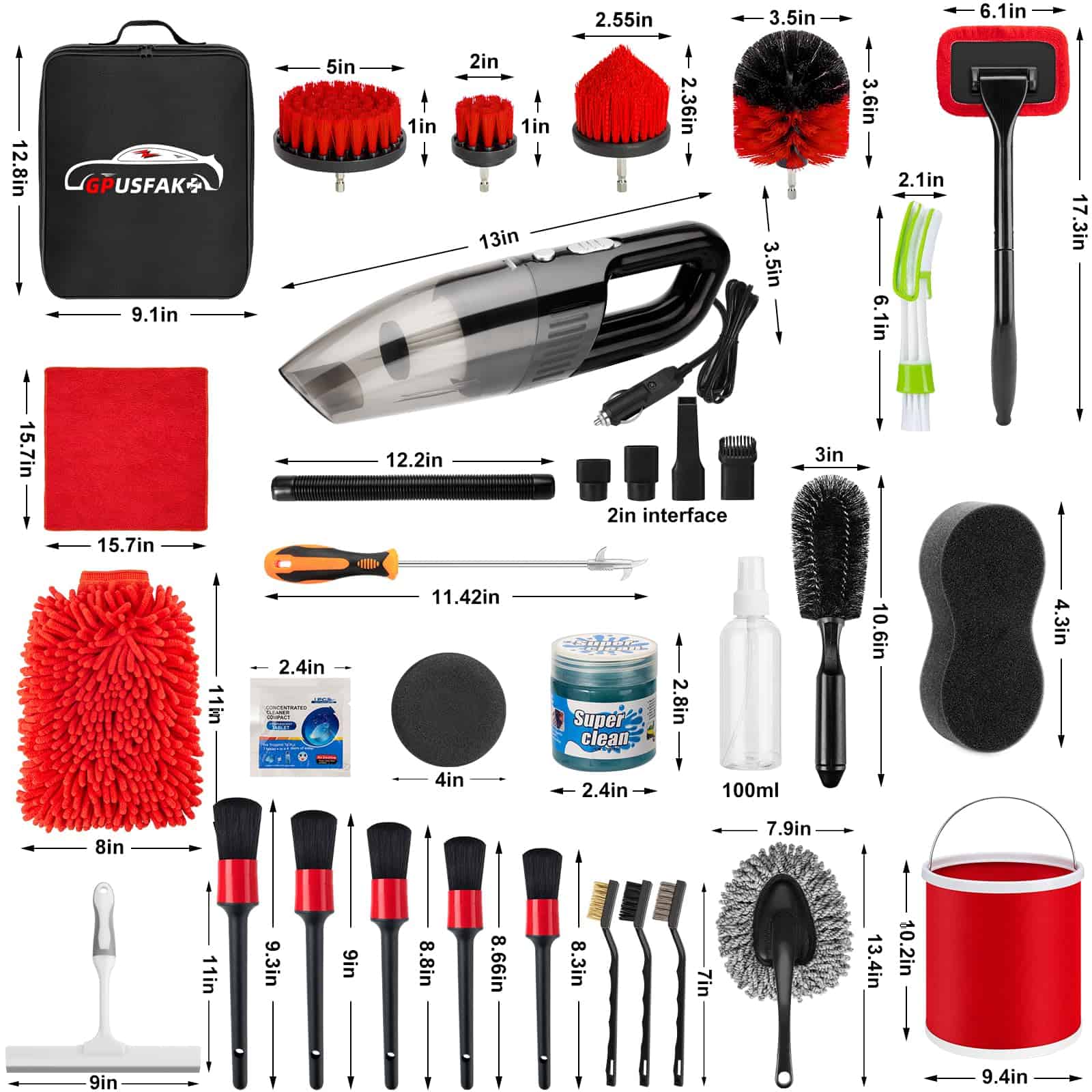 Kit de Limpieza para Automóvil GPUSFAK de 44 Piezas con Cepillos Especiales, Aspiradora para Automóvil, Juego de Cepillos para Taladro, Cubo Plegable, Herramienta para Limpieza de Parabrisas, Cepillo para Llantas, Toallas, Set Completo para Detallado Interior y Exterior de Automóvil. Características: Material de alta calidad, suave, no daña la pintura del automóvil, no deja rastros, brinda protección integral a su automóvil. Kit de Cuidado de Automóviles MULTIUSO 1. Para la limpieza interior y exterior de automóviles, RV, camiones y motocicletas. 2. Ideal para la limpieza del hogar y la oficina. 3. Se puede utilizar para limpiar pintura, vidrio y metal. Excelente Servicio: Estamos seguros de que quedará satisfecho con esta compra. Si tiene alguna pregunta sobre nuestros productos, contáctenos y trabajaremos para que se sienta satisfecho.