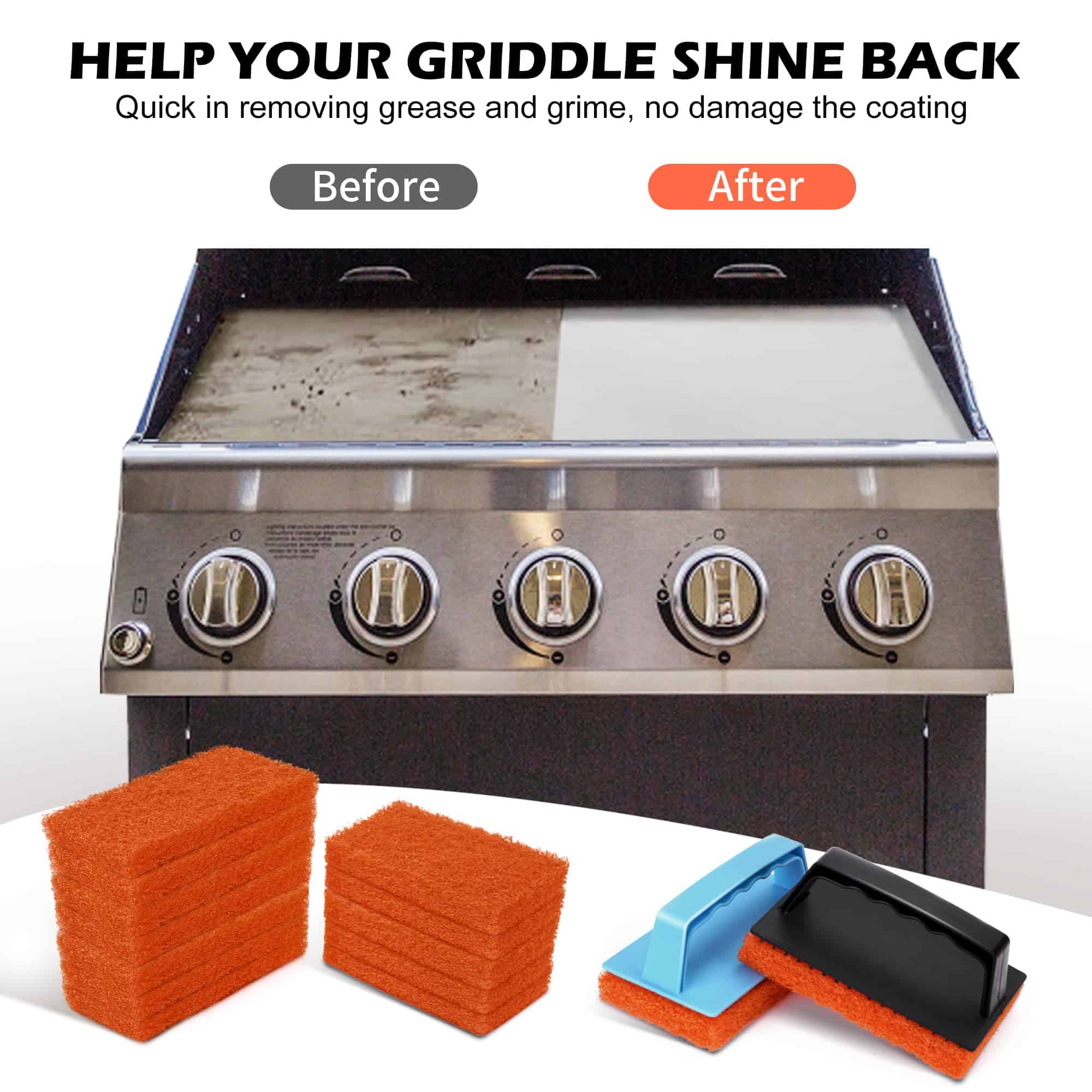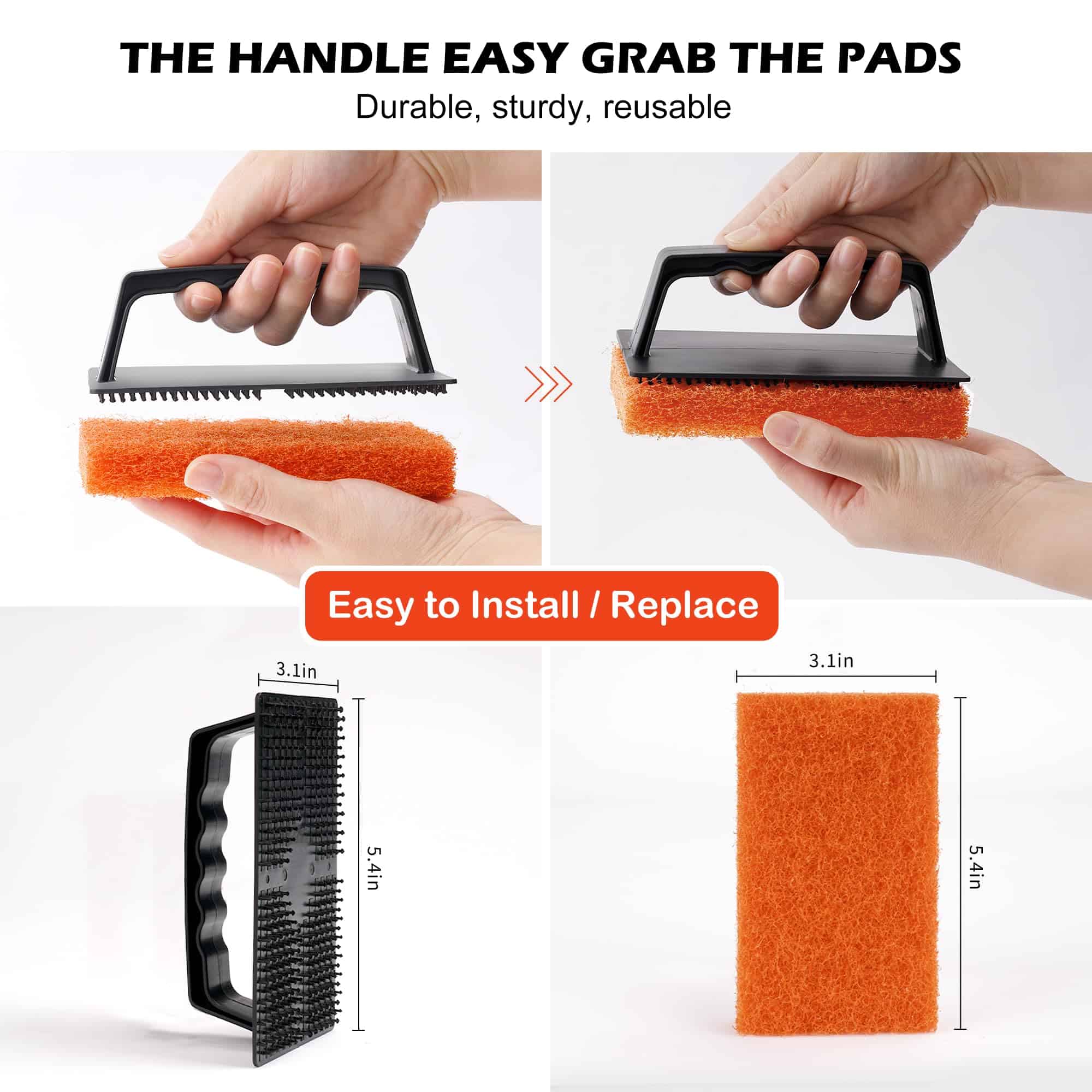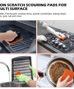 Si estabas buscando algo para limpiar eficazmente tu parrilla, no rayar la superficie de tu parrilla / sartenes, limpiar fácilmente los restos de alimentos pegados y la grasa. Las almohadillas de limpieza de kit de limpieza de parrilla Hasumcol podrían hacer todo esto, aplica algo de limpiador a la almohadilla de fregar con mango para fregar, es fácil quitar la mancha de comida seca y residuos después de cocinar, también se puede usar en una variedad de superficies que necesitan fregar de forma intensiva. – Ideal para limpiar parrillas, parrillas, ollas de hierro fundido, quemadores de estufa, herramientas de barbacoa, sartenes y utensilios de cocina. – Excelente para la cocina, garaje y exteriores, baños, parrillas y planchas Blackstone. – Obtendrás -14 almohadillas de fregar y 2 mangos.