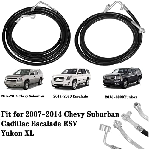 Kit de Líneas de Repuesto de Aire Acondicionado SU33468, Juego de Mangueras de Aire Acondicionado de Alta Presión Compatible con Cadillac Escalade ESV, Chevy Suburban, Yukon XL 2007-2014. Aplicación: Compatible con Chevy Suburban/Cadillac Escalade ESV/Yukon XL 2007-2014. Elimina las líneas originales de aluminio con fugas y actualiza a nuestras mangueras de goma de alta presión. Fabricadas con aluminio superior y mangueras de goma de alta presión para asegurar una larga vida útil.