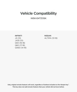 Simple Key es tu solución definitiva de bricolaje para el costoso reemplazo del control remoto de la llave de coche. El kit de programador de llaves y llave es fácil de instalar y usar. No se requiere ayuda adicional de un fabricante de controles remotos de llave de coche. Compatible con varias marcas y modelos de coches Simple Key con control remoto existente de 4 botones. (Nota: Solo las funciones y características de botones originales de fábrica funcionarán en tu vehículo). Cómo Usarlo: Utiliza nuestro sencillo programador para hacer un control remoto de llave de repuesto en minutos. Todo lo que necesitas es nuestro instalador EZ, tu control remoto de llave existente, y el nuevo control remoto inteligente proporcionado con tu pedido. Sigue estos sencillos pasos para activar. Activación de la llave: Introduce el código de activación correspondiente al año, marca y modelo de tu vehículo en la llave. Emparejamiento de la llave: Arranca el motor con tu llave existente. Conecta el programador de Simple Key. Sigue las instrucciones para programar el nuevo control remoto de la llave a tu vehículo. Opcional: Corta la hoja de la llave de acceso de emergencia. Esto se recomienda en caso de que la batería de tu vehículo o control remoto se agote. Olvídate de la molestia de un cerrajero o concesionario de automóviles. ¡Consigue ya tu kit de programación Simple Key! Haz un control remoto de llave de repuesto sin salir de casa.