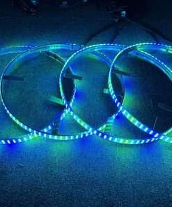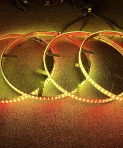 Kit de luces de anillo de rueda LED triple fila RGB de 15.5» Dream Chasing, perfecto para añadir un toque de estilo y personalidad a tu vehículo. Diseñado con un nivel de impermeabilización IP68 para mayor durabilidad y resistencia a las condiciones climáticas adversas. Con 3 modos de control: Control Remoto, Aplicación de Bluetooth (BLEDIM) y Interruptor para una fácil operación. Este kit incluye todo lo necesario para la instalación, desde las luces de anillo de rueda hasta el control remoto y los accesorios de montaje. ¡Ilumina y personaliza tu coche al mismo tiempo con este kit de luces de anillo de rueda LED de alta calidad!