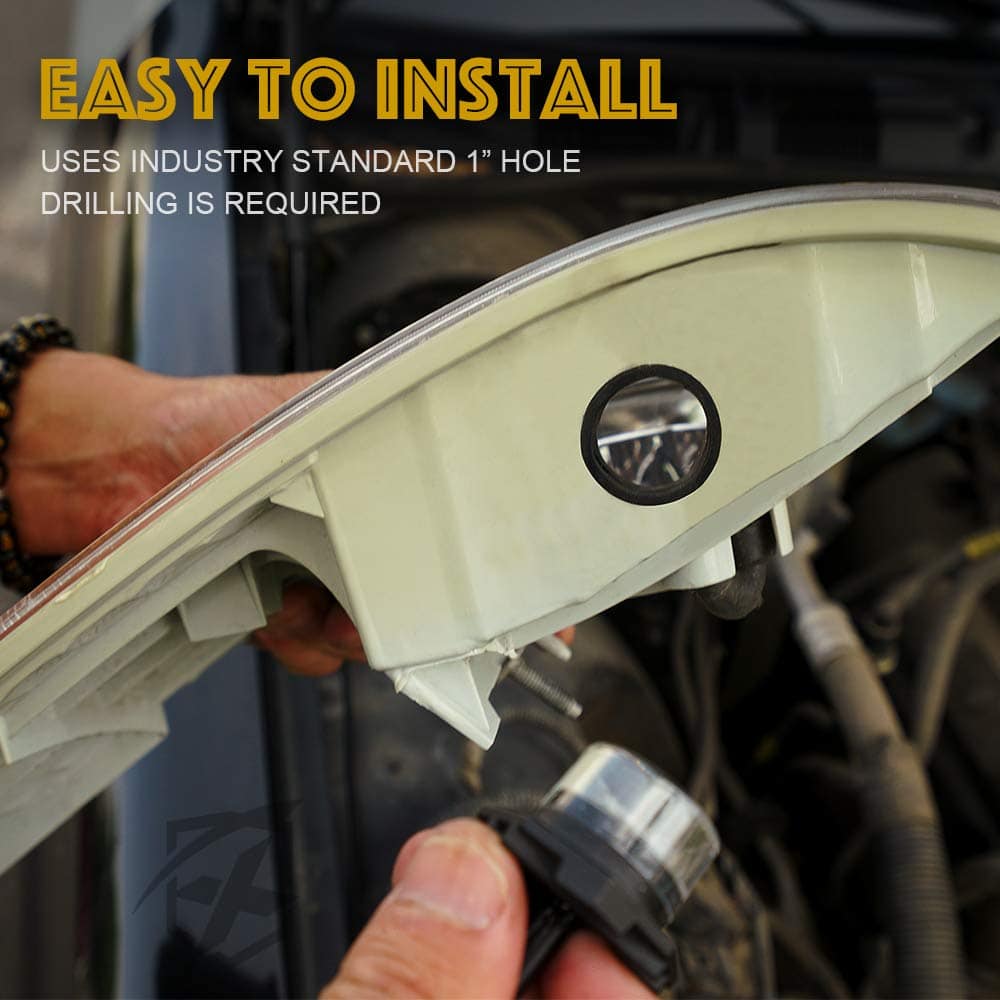 4. SE REQUIERE PERFORACIÓN DE AGUJERO DE 1 PULGADA: Reemplaza fácilmente las luces estroboscópicas ocultas tradicionales con un agujero existente de 1″, se monta en cualquier agujero de 1″ en faros, luces antiniebla, luces traseras y otras diversas conjuntos de luces.