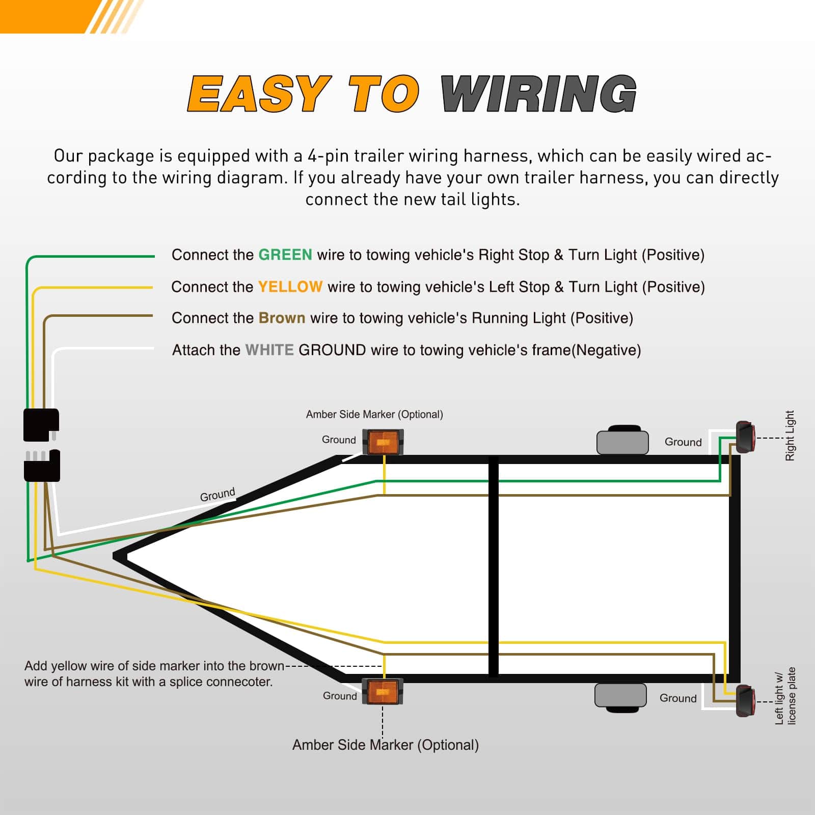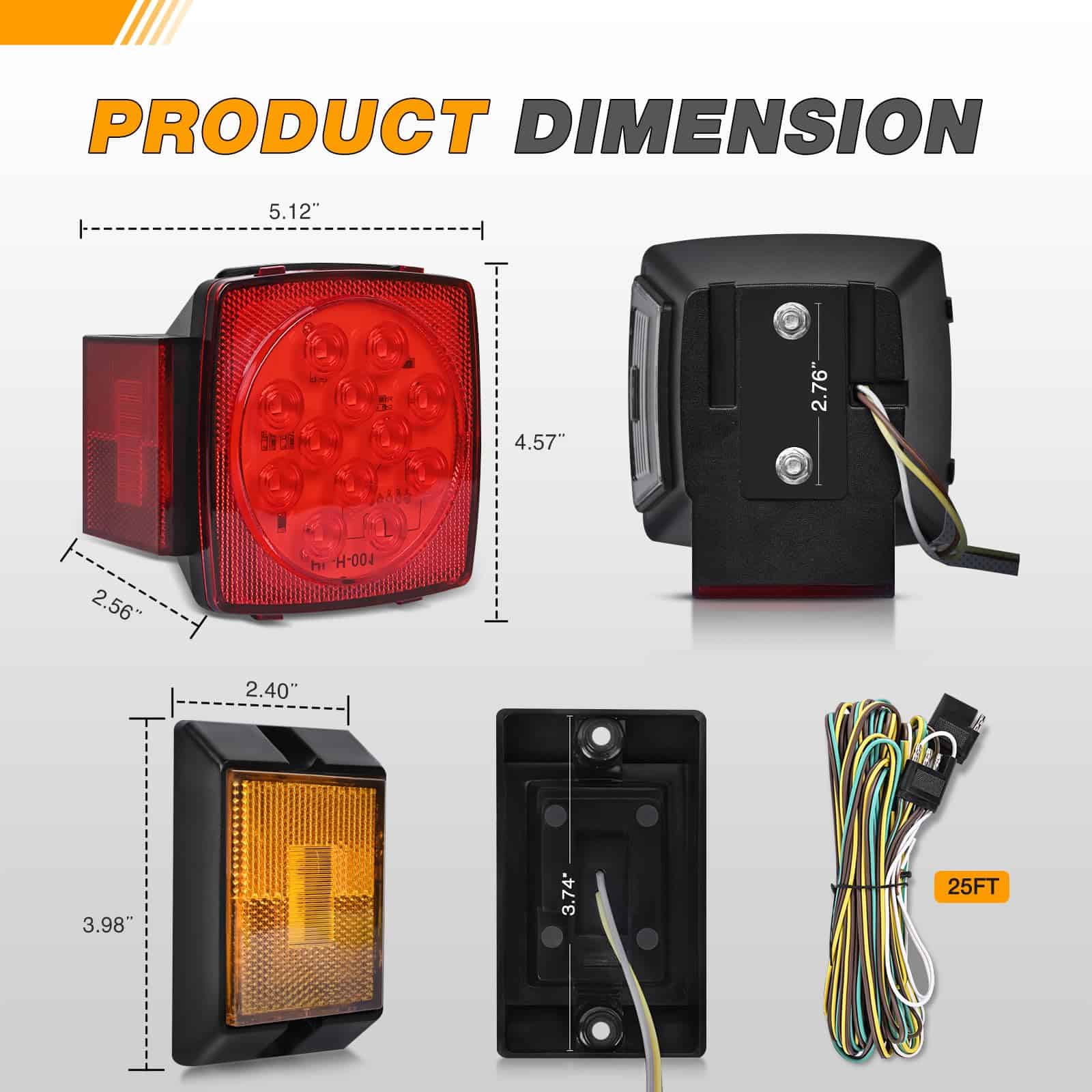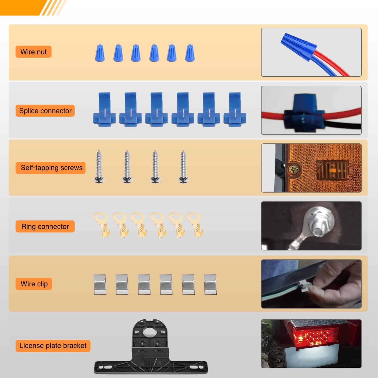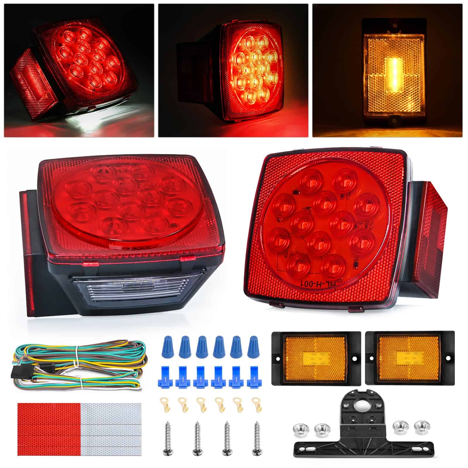 4. Incluye Paquete: Viene con todo lo necesario para la instalación. Incluye luces cuadradas, luz ámbar de marcador de posición, soporte de matrícula, arnés de cableado para remolque de 25 pies de longitud, el reflector y los diferentes tipos de hardware de montaje de acero inoxidable.