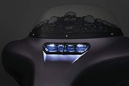 El accesorio Kuryakyn 5056 de acento de ventila de carenado negro brillante con luces LED, personaliza tu moto dándole más profundidad y estilo a tu carenado delantero. Agrega un suave brillo y aumenta tu visibilidad mientras realzas el aspecto del carenado Rushmore batwing con este acento LED. Con este cableado plug and play pasa menos tiempo instalando y más tiempo recorriendo los paisajes. Incluye (1) kit de luces LED para ventila de carenado negro brillante, (1) kit de hardware; herramientas sugeridas para la instalación (no incluidas): juego de llaves hexagonales y de torsión, agua tibia con jabón, un paño limpio y cinta adhesiva. El accesorio Kuryakyn 5056 de acento de ventila de carenado negro brillante con luces LED es compatible con modelos Harley-Davidson: Electra Glides ’14-’19, Street Glides y Tri Glide; (excluye modelos CVO y la ventila de color a juego Slipstream para carenados Batwing).