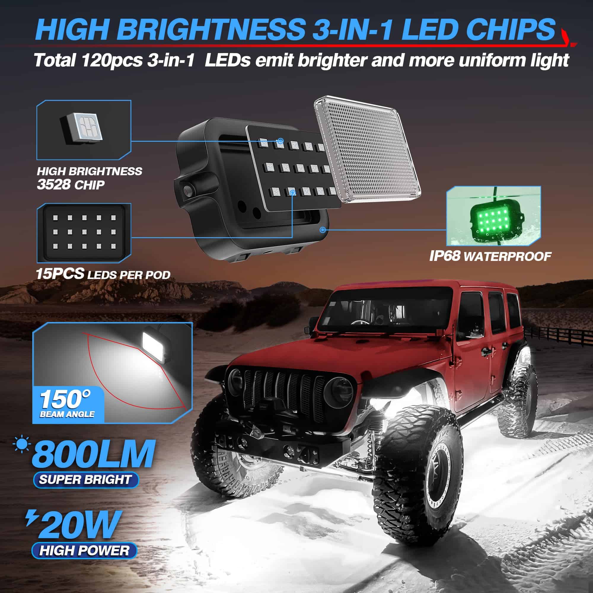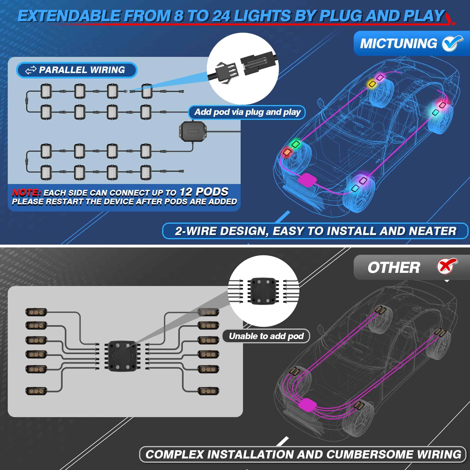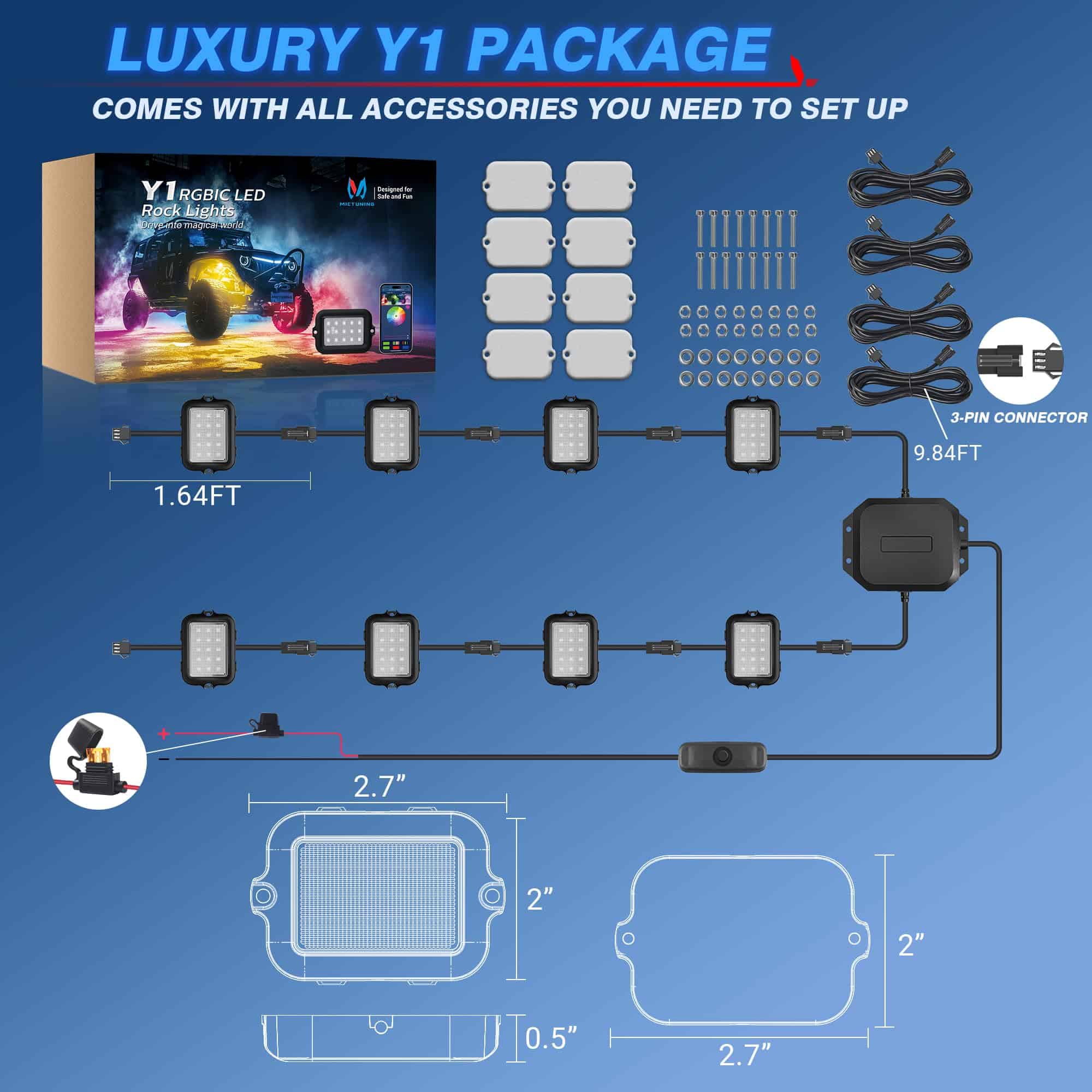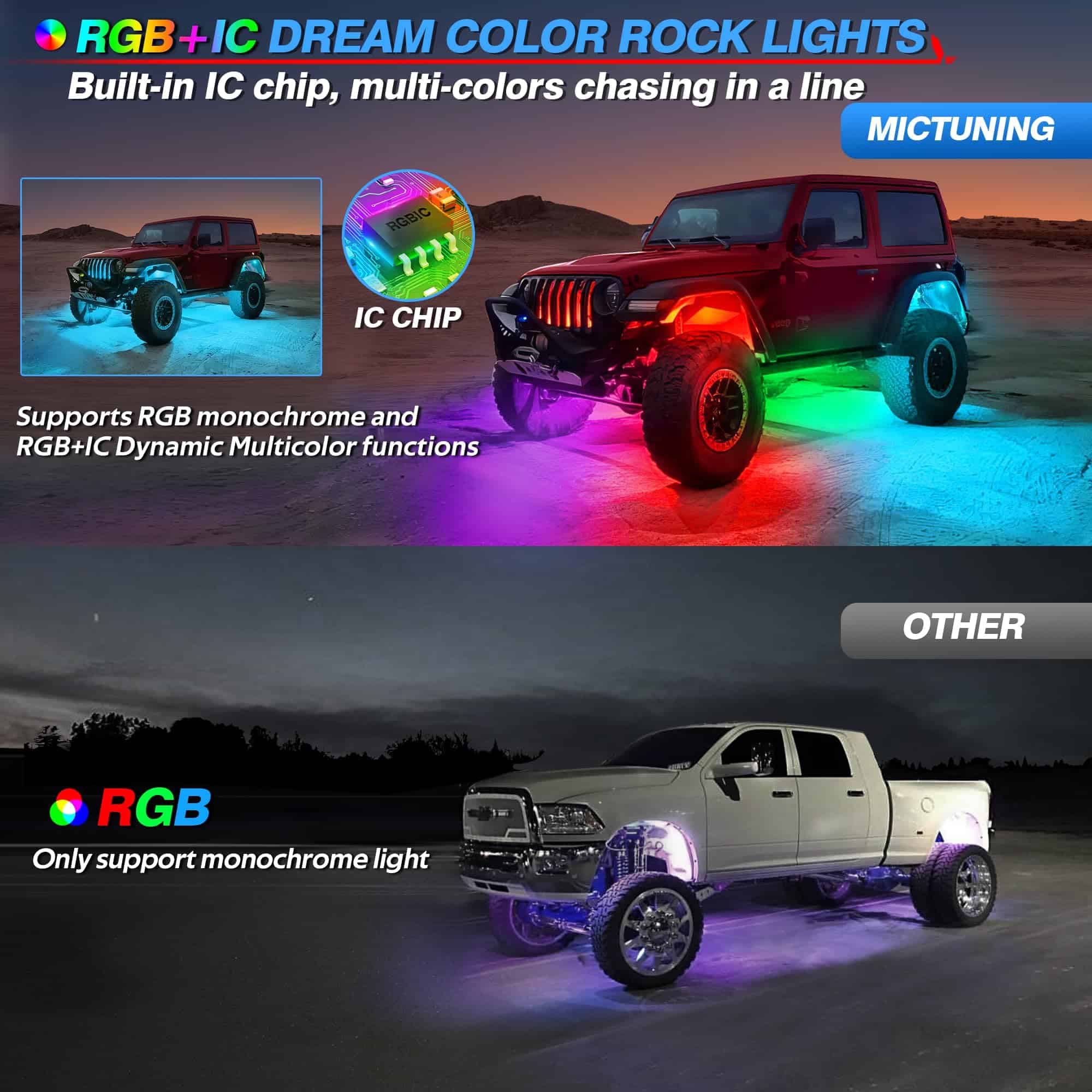 Kit de luces LED para rocas MICTUNING Y1 RGB+IC Dream Color