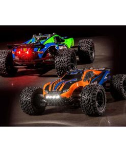 Estos parachoques de repuesto están destinados al Traxxas Rustler 4×4. Cuatro LED están instalados en el parachoques delantero y dos LED están instalados en el parachoques trasero. Los LED están instalados de fábrica y pre-cableados para mayor facilidad de uso. El paquete incluye un parachoques delantero, un parachoques trasero, un Y-harness y hardware.