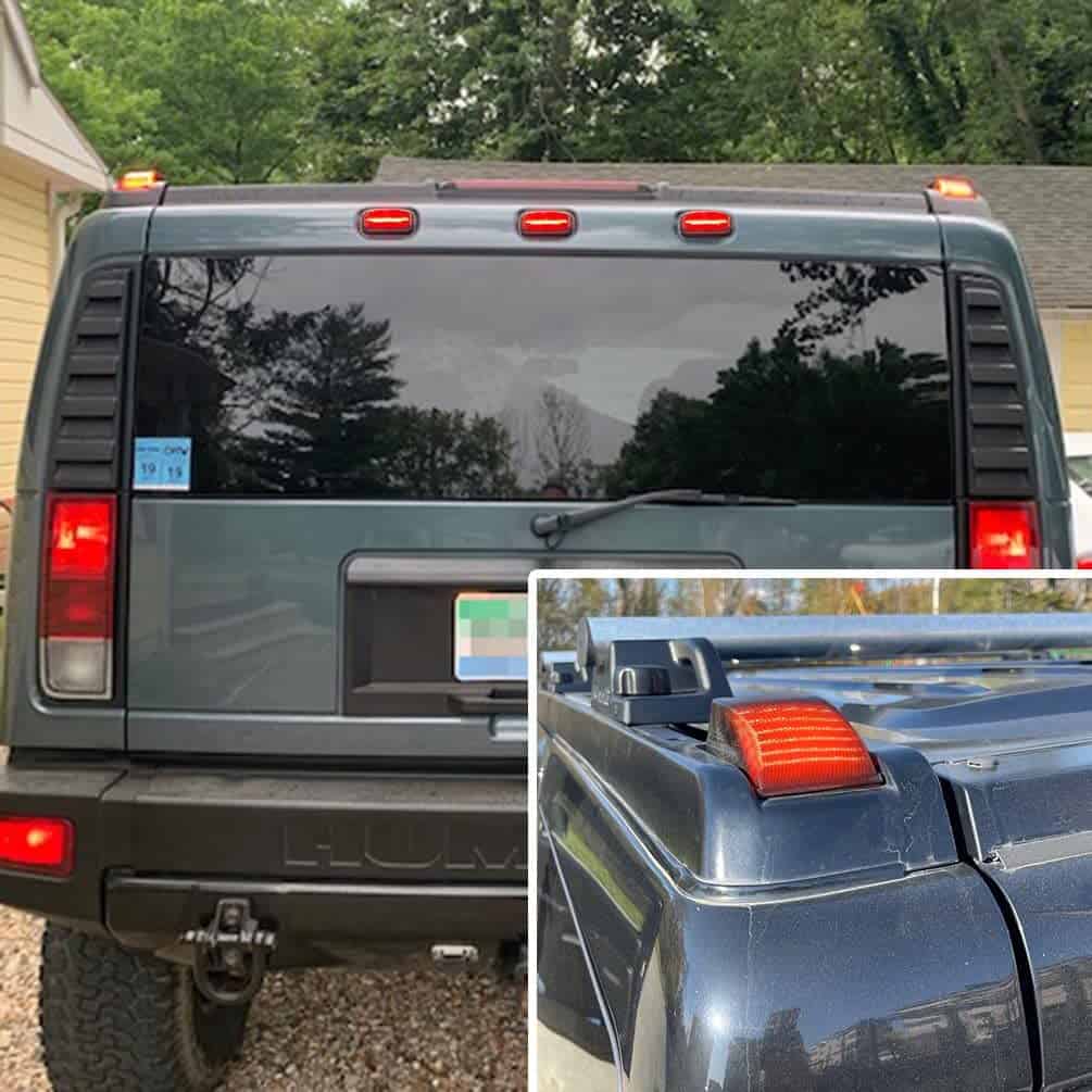Kit de luces para techo LED H2 SUT para Hummer H2 2003-2009 y Hummer H2 SUT 2005 & 2007-2009 Luces de marcador de liquidación superior Negro Lente ahumado LED ámbar/rojo frontal trasera OEM Halogeno Lámparas Reemplazo. Compatible con Hummer H2 2003-2009, Hummer H2 2005, Hummer H2 SUT 2007-2009. Por favor, tenga en cuenta que estas luces son incompatibles con el Hummer H2 SUT 2006. Hecho de plástico PC anti-arañazos que protege la lente de la decoloración por la exposición prolongada. Chips LED Rojos de alta potencia, 200% más brillantes que las lámparas OEM. Lente ahumada ámbar LED H2 delante de las lámparas de marcador del techo de la cabina y lente roja LED H2 detrás de las lámparas de marcador del techo de la cabina. Actualiza las lámparas de liquidación lateral de techo de tu Hummer H2/H2 SUT con nuevas cubiertas de lentes ahumadas de moda y una iluminación SMD LED más brillante. Eleva la aura de tu coche musculoso y añade características adicionales de visibilidad de seguridad. Fácil de instalar. Conectar y jugar directamente, reemplazar perfectamente las piezas de fábrica originales, no se necesita modificación. Perfecto para reemplazar las OEM 25809313 15060524 15060525 15060523. Paquete: 5 luces de marcador superior de ámbar LED de lente ahumada delanteras y 5 luces de marcador superior de LED rojo traseras, aprobadas por DOT/SAE, garantía de 1 año.