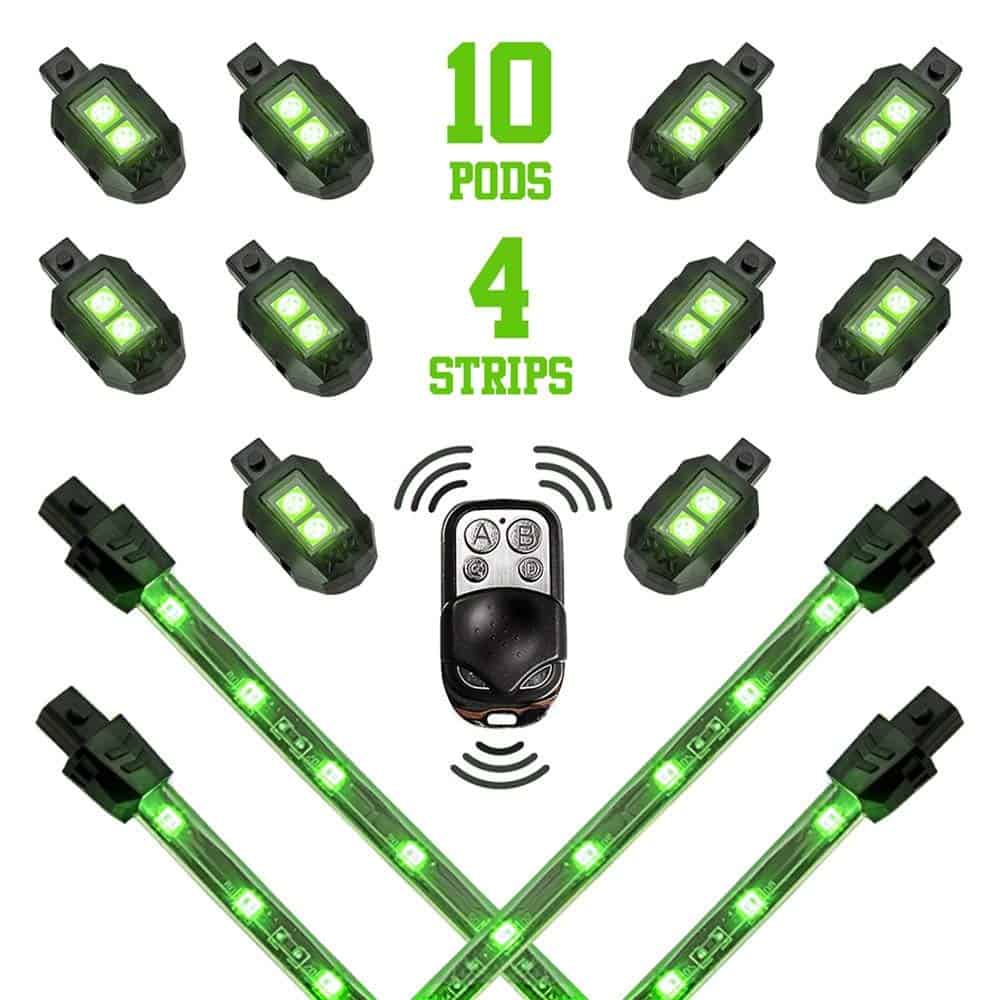 Kit de Luz de Acento LED de Color Verde de 10 Pods + 4