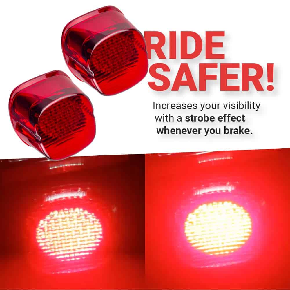 El kit de luz de freno estroboscópica Tri-Glide incluye dos luces de freno y está diseñado para su uso en modelos de trikes Harley-Davidson Tri-Glide y Street Glide. Las luces de freno no tienen ventanas de matrícula. Las luces son reemplazos plug and play en todos los modelos de Tri-Glide actuales desde 2009 y Street Glide trike desde 2010-2011.
