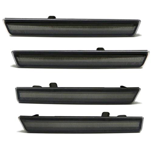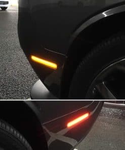 ¡Para completar el ensamblaje LED de tu Challenger, querrás ESTE juego completo de luces de marcador lateral LED con lente ahumada! Esta es una unidad completa de luces de marcador lateral LED tanto para el frente como para la parte trasera. Cada lámpara de marcador lateral LED está alimentada por 40 diodos LED de alta potencia. Los dos marcadores laterales delanteros son de color amarillo ámbar, mientras que los dos marcadores laterales traseros son de color rojo. Esta unidad completa supera con creces las luces de marcador lateral OEM de tu Challenger, así como otros marcadores latermarket, y mejorará tu visibilidad y seguridad. Las luces de marcador lateral delanteras y traseras con lente ahumada con 180 diodos LED están hechas para adaptarse al Dodge Challenger 2015-2018. P: ¿Por qué debería obtener este juego de luces de marcador lateral LED para mi Dodge Challenger si ya está equipado con luz LED A: Si bien los marcadores laterales OEM de tu Dodge Challenger ya brillan con luz LED, solo funciona con 2 chips LED que limitan su visibilidad. Además, las lentes de los marcadores laterales de serie cuentan con un diseño antiguo y desactualizado que resalta como un punto negativo y es en general antiestético. Actualice a nuestras luces de marcador lateral LED para lograr una luz LED audaz, vibrante y más brillante que fluye continuamente a lo largo de la carcasa. Reemplace las feas lentes de lámparas de marcador lateral ámbar/rojo con nuestras lentes claras o ahumadas para un aspecto de muscle car con estilo!