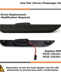 iJDMTOY ofrece un kit de luz LED de marcador lateral trasero completo en rojo con lente ahumada, compatible con Ford Mustang 2015 en adelante. Este producto reemplaza las lámparas de marcador lateral OEM e incluye un par de ensamblajes de marcador lateral trasero LED de humo oscuro para el conductor y el pasajero. Fabricado con plástico ABS duradero y sellado ultrasónico para resistencia al agua IP66, este kit está alimentado por una franja completa de diodos/bombillas LED que se iluminan a lo largo de toda la lámpara. Transforma tu vehículo con esta luz LED super brillante que ofrece un aspecto moderno y una excepcional luminosidad para mejorar el estilo de tu vehículo. La característica de luz de estacionamiento/posición brillante garantiza la seguridad tanto de día como de noche. Instala fácilmente los nuevos marcadores/reflectores LED retirando los OEM del paragolpes, guardabarros o guardabarros (normalmente instalados con clips de sujeción rápida o tornillos), luego gira y desbloquea el adaptador para quitar la bombilla incandescente SOLAMENTE, instala el reemplazo LED nuevo y vuelve a conectar el cable de alimentación con el adaptador de bombilla, y finalmente bloquea el adaptador de bombilla en el marcador LED para evitar cualquier condensación de agua.