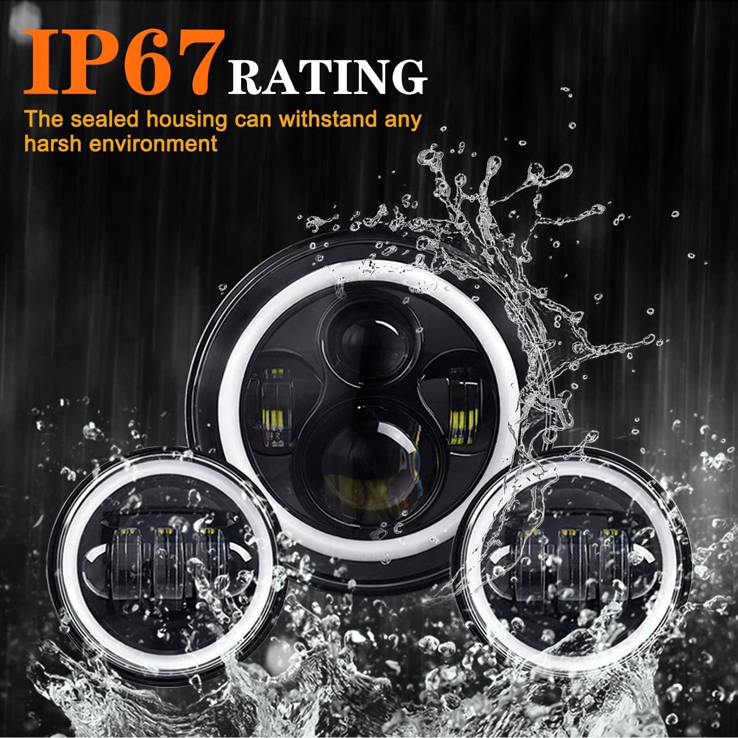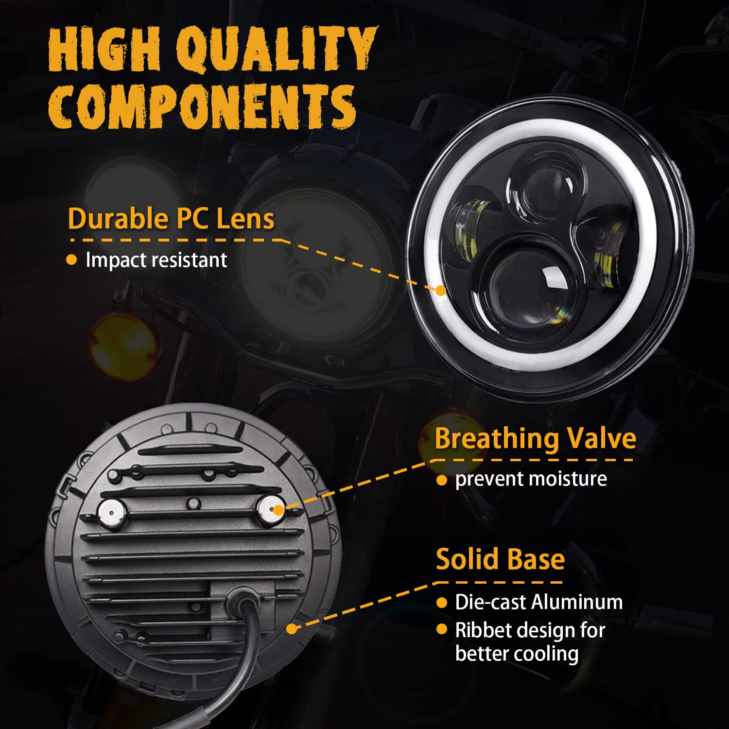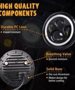 1. ALTA CALIDAD Fabricado en aluminio duradero y lente de policarbonato, resistente a golpes y vibraciones, máxima protección para el faro LED de abrasiones menores y arañazos leves. Diseño acanalado para una refrigeración eficiente. Gran resistencia, ligero y a prueba de óxido. Carcasa sellada, resistente al agua IP68. Extiende la vida útil a más de 50000 horas.