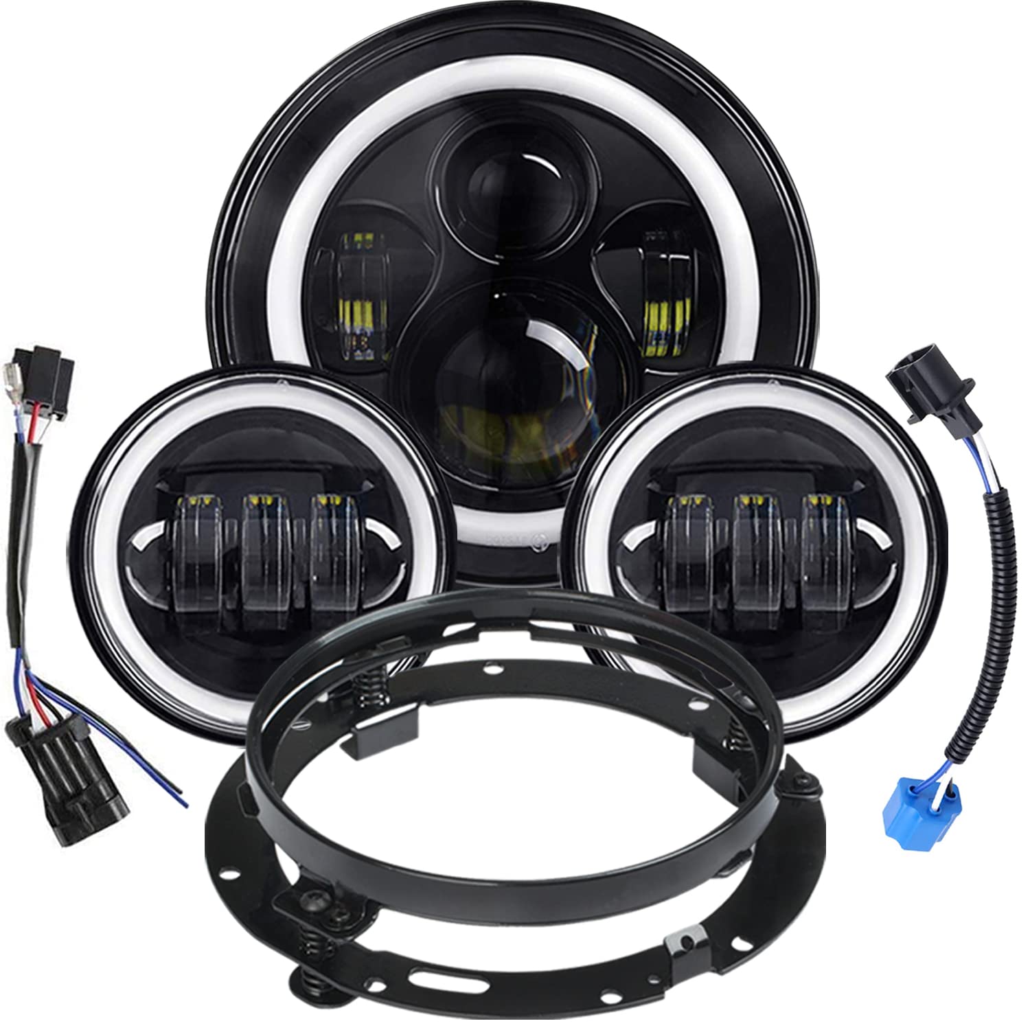 5. PAQUETE INCLUIDO 1 faro LED de 7 pulgadas, 2 luces de niebla de 4.5 pulgadas, 1 anillo para faro de 7 pulgadas, 1 arnés de cables para el faro, 2 arneses de cables para las luces de niebla (nuestro kit de luces se ajustará bien a cualquier motocicleta con faro de 7 pulgadas y luces de niebla de 4.5 pulgadas, no necesita piezas adicionales). Viene con garantía de 12 meses.
