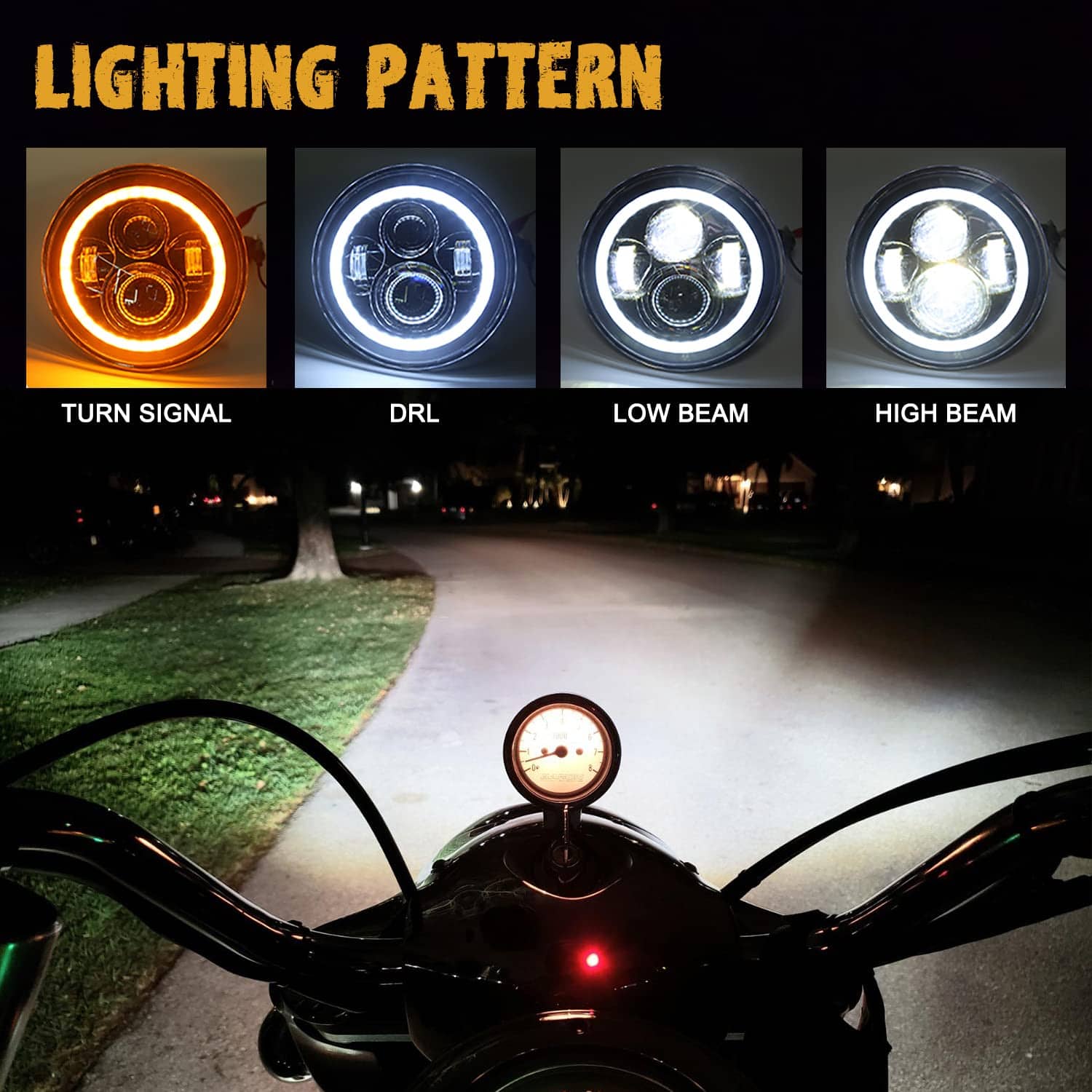 2. MÁS BRILLANTE Nuestros faros LED para motocicletas están hechos de los chips de intensidad más alta, luz blanca pura y limpia. Mucho más brillante y duradero que la luz de fábrica y otras luces. 4000LM para Luz Alta, 2600LM para Luz Baja. La distancia de irradiación válida para luz alta / baja es mucho más larga que las bombillas halógenas OEM. Disfruta de tu conducción segura con nuestros faros y luces de niebla LED.