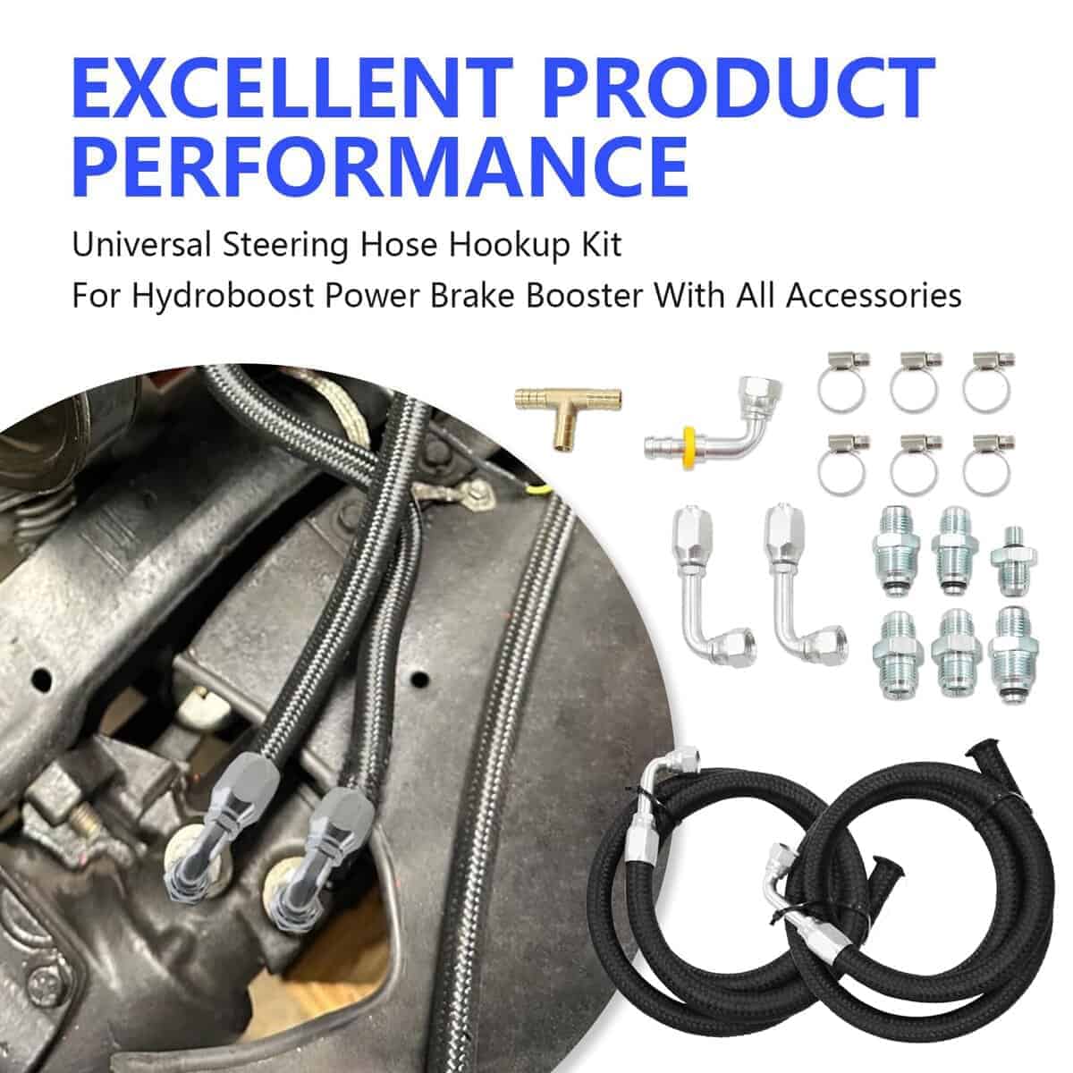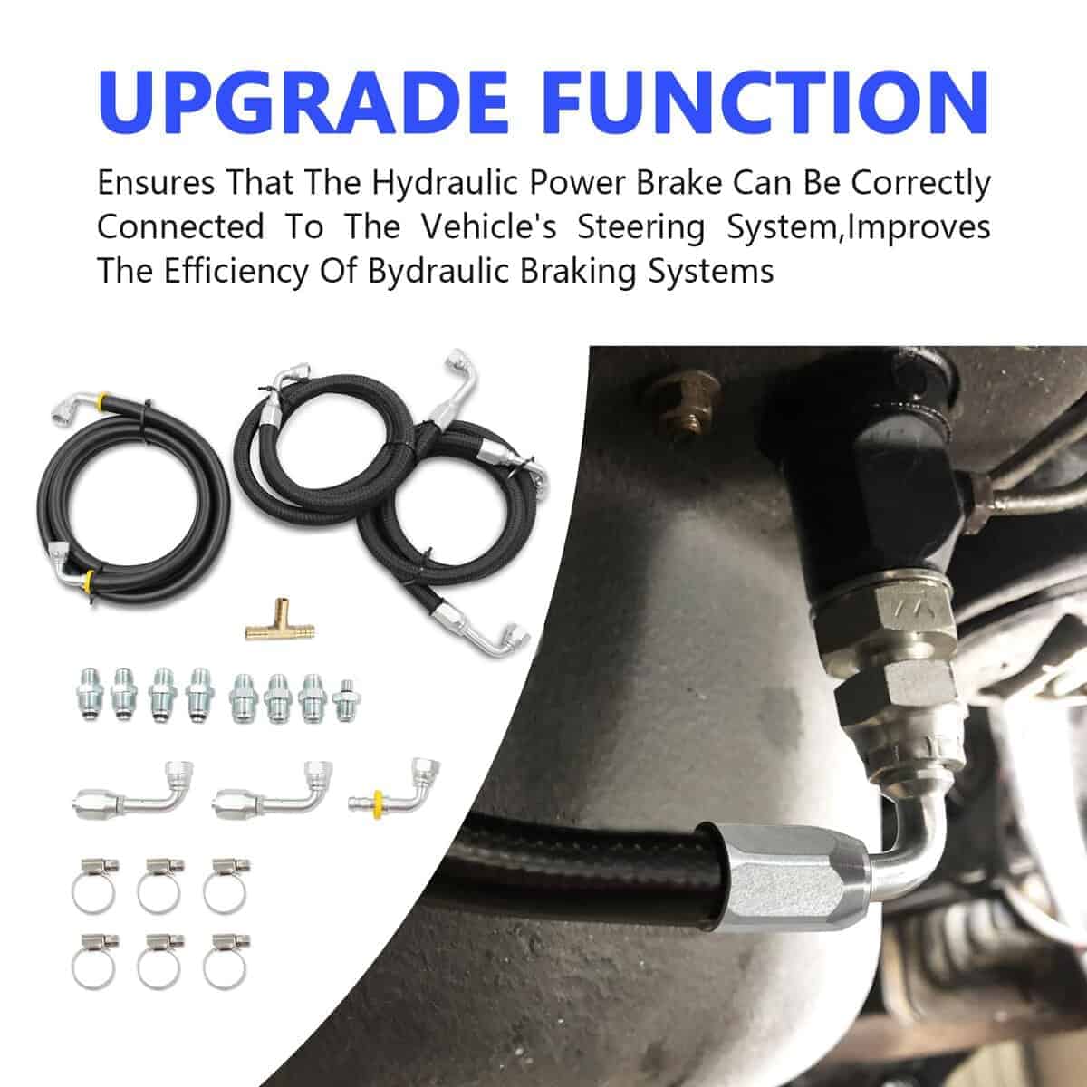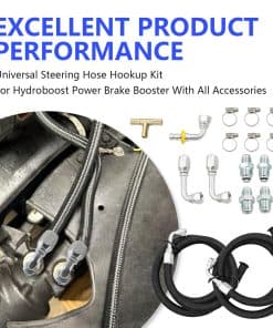 Necesitarás completar la instalación de HydrBoost o HydrStop. Este kit contiene todo lo necesario para conectar la asistencia hidráulica a la bomba y a la caja/rack y piñón de dirección.