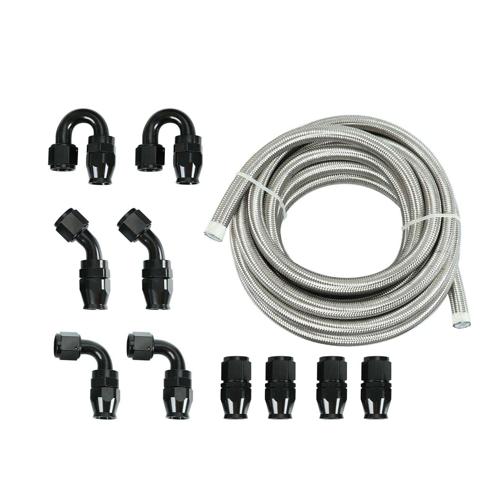 Compatibilidad: Estas mangueras y accesorios de combustible están dimensionados correctamente. Esta Manguera de Combustible de Nailon Trenzado Negro está especialmente diseñada para funcionar en cualquier proyecto automotriz.